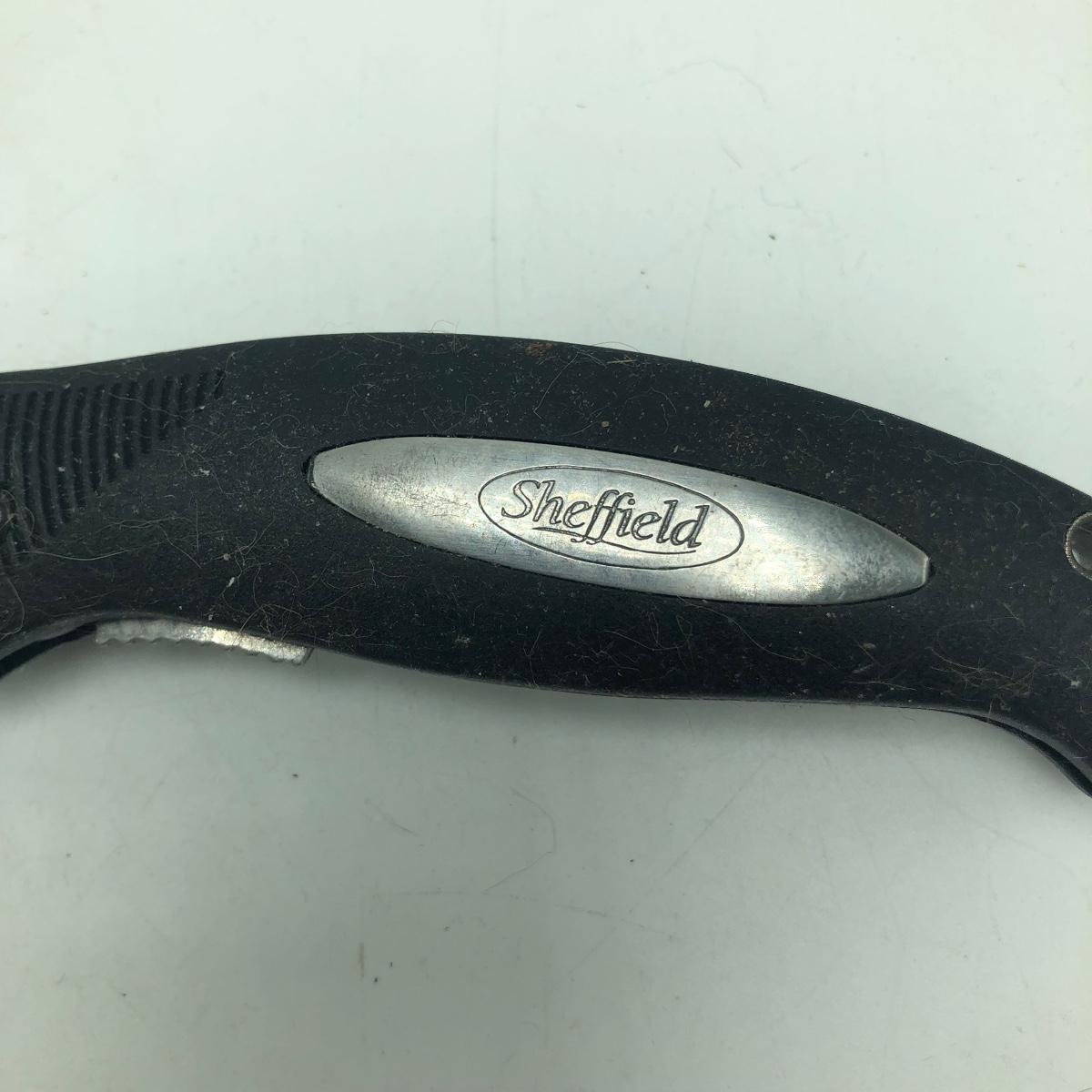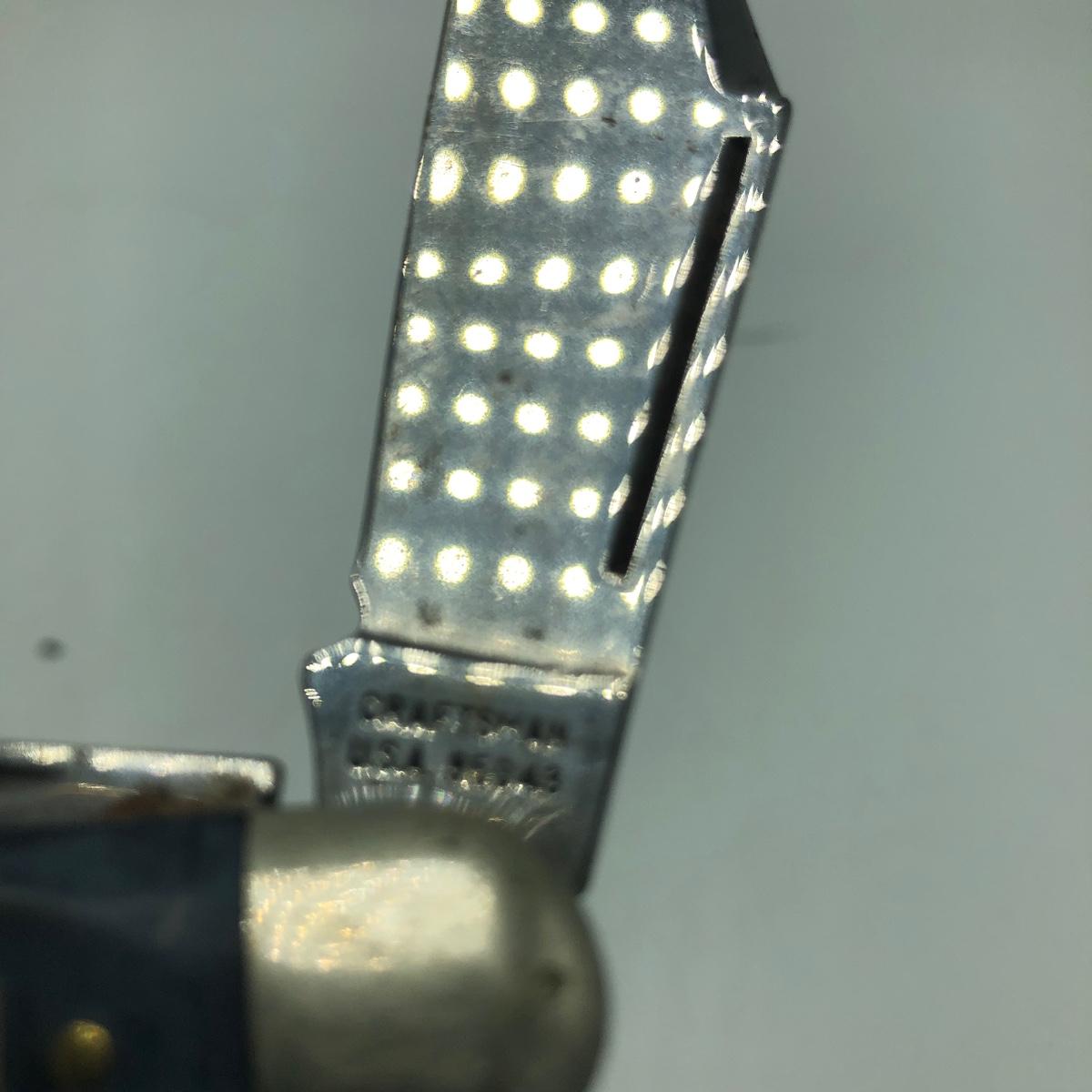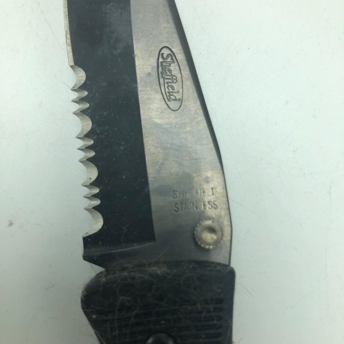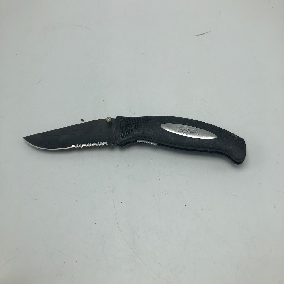 Lot includes Marble ashtray marked Vermont Marble Company and a larger matching ashtray with no markings, Sheffield pocketknife, Sears Craftsman vintage pocketknife and a Stihl pocketknife. Largest ashtray measures 6” x 6” x 1.5”.