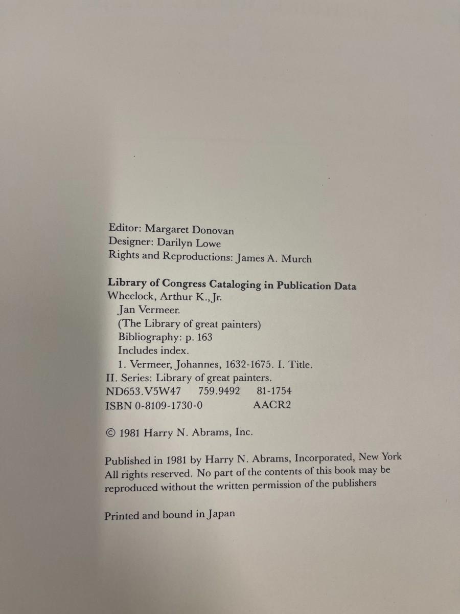 Vermeer Art Book, Published by Abrams 1981