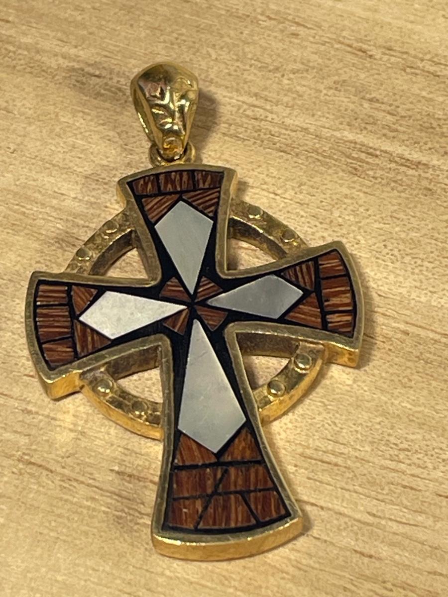 Gold over Sterling Silver Inlay Cross pendant