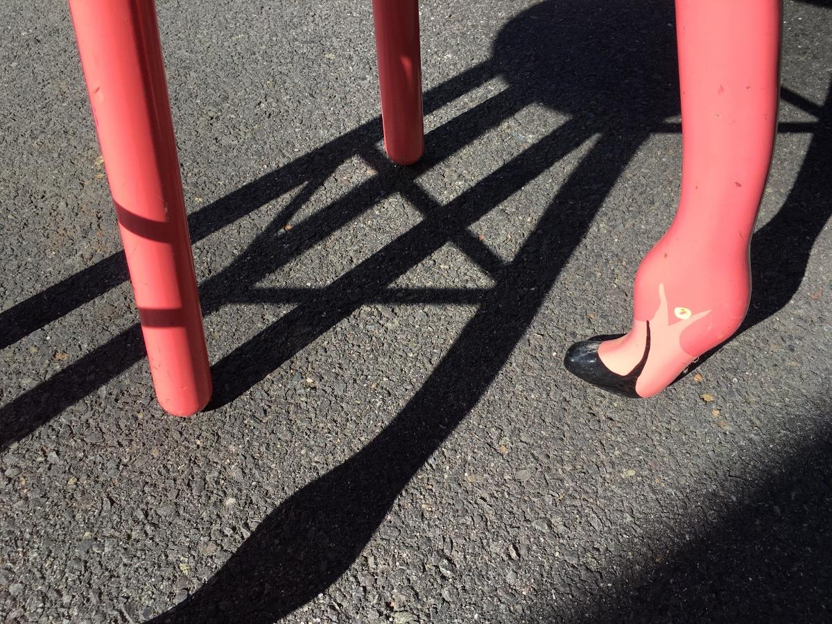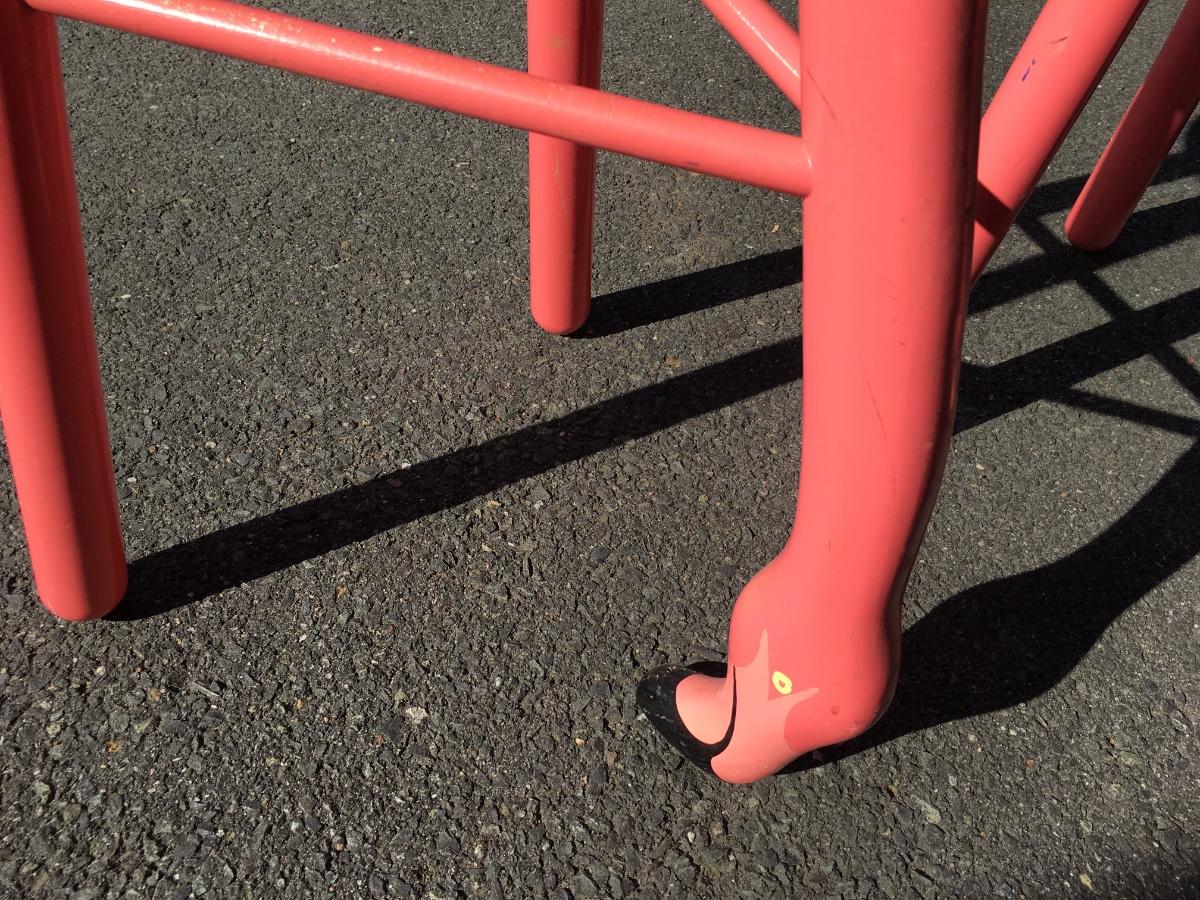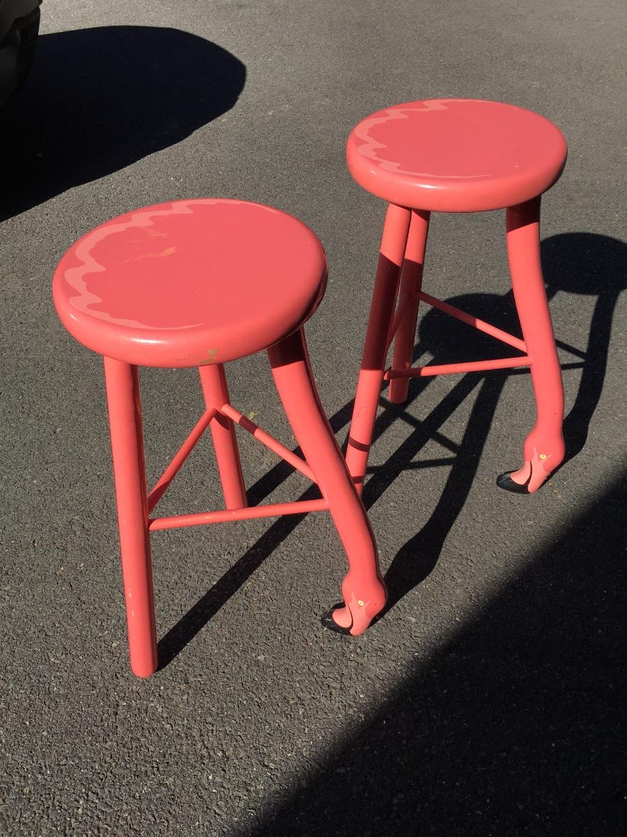 Pair of Flamingo stools. Truly unique and very reminiscent of "maimi Vice' days. Shows signs of wear on paint, but in overall very good condition.