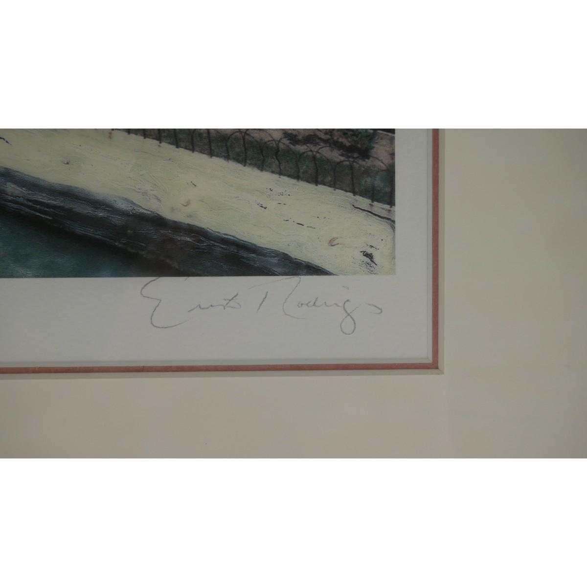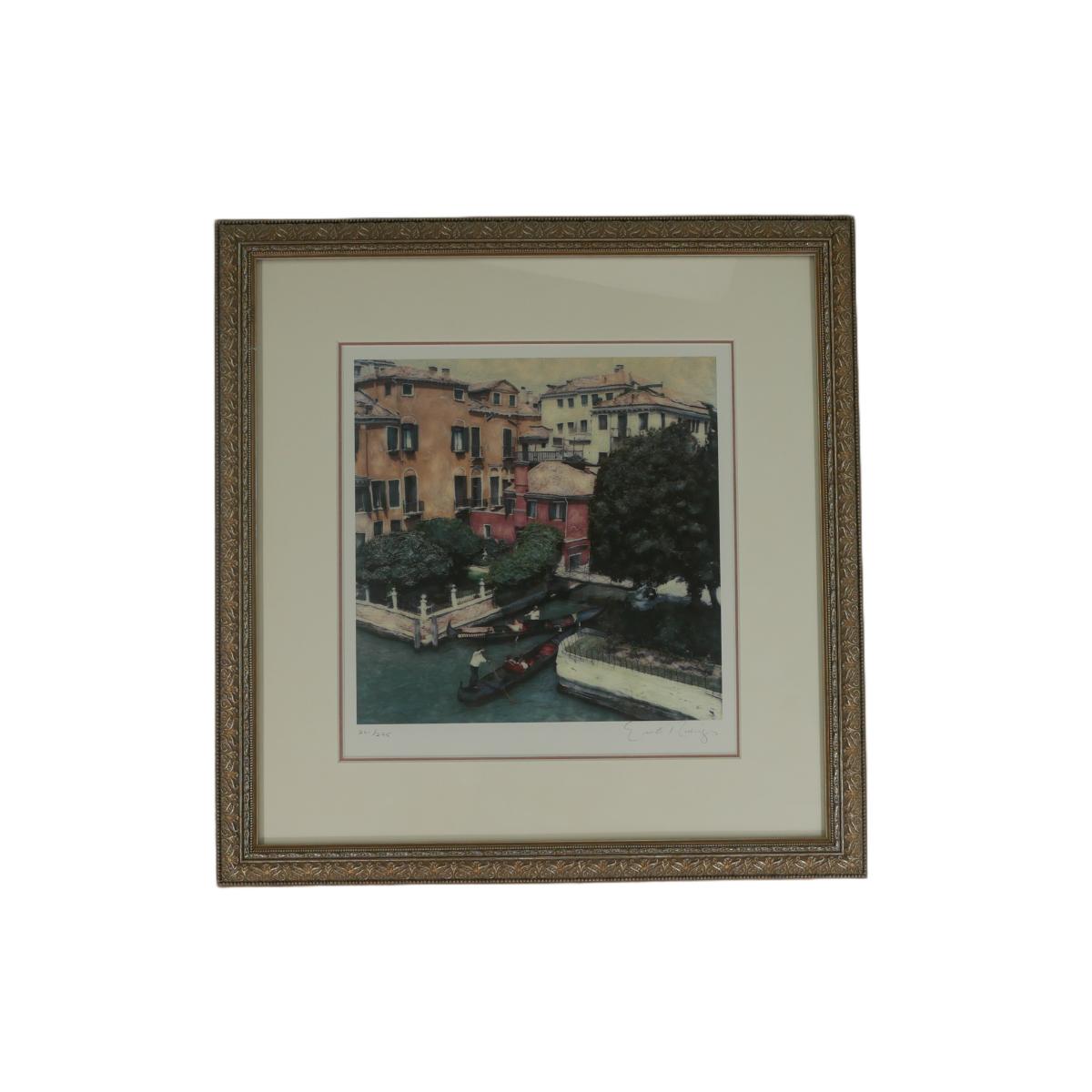 "Vernazza Fleet" by Ernesto Rodriguez limited edition giclee, numbered 261/275. Signed in pencil by artist. Dated 1998. Certificate of authenticity is included. Art measures L 11" x H 11". Frame measures L 19.5" H 20.25" x D 1". Weight is 5 lb 10 oz. (A54)