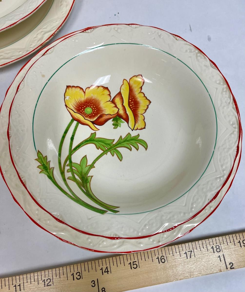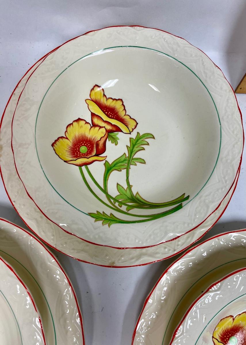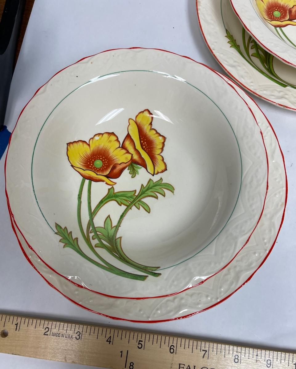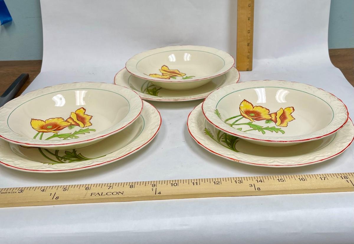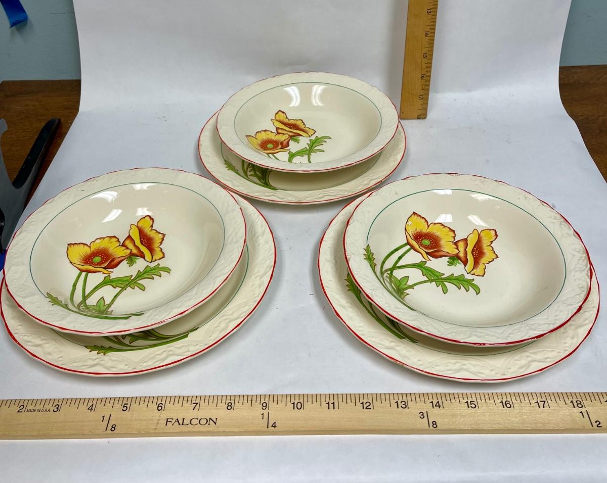 Vernon Early California Pottery Poppies 3 Dinner Plates & 3 bowls