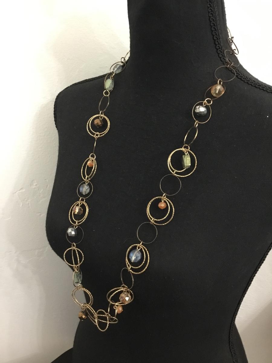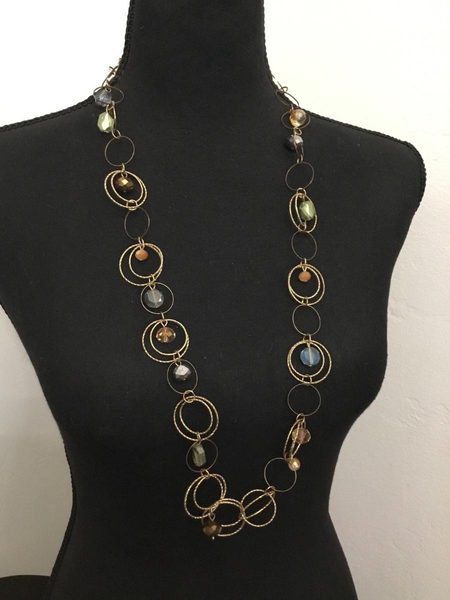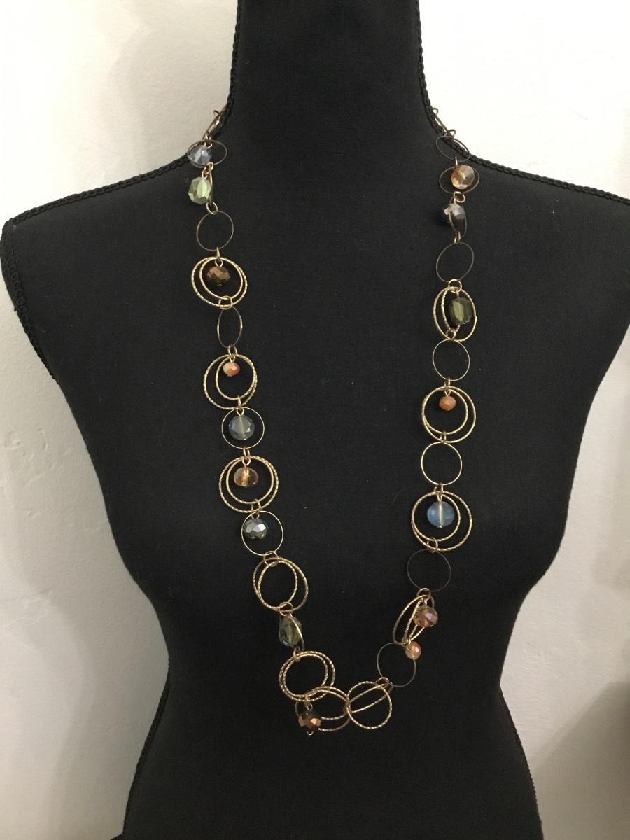 Very beautiful, gold, toned, multicolored, crystal bead statement, necklace