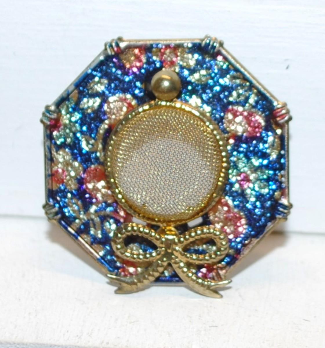 Very Colorful Blues, Pinks & White "Fancy Hat" BROOCH (1½" Circ.) with Ribbon and Screen Top