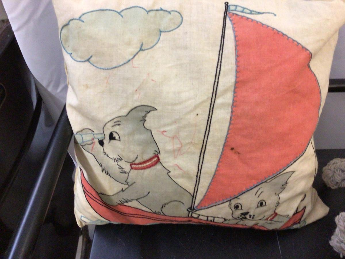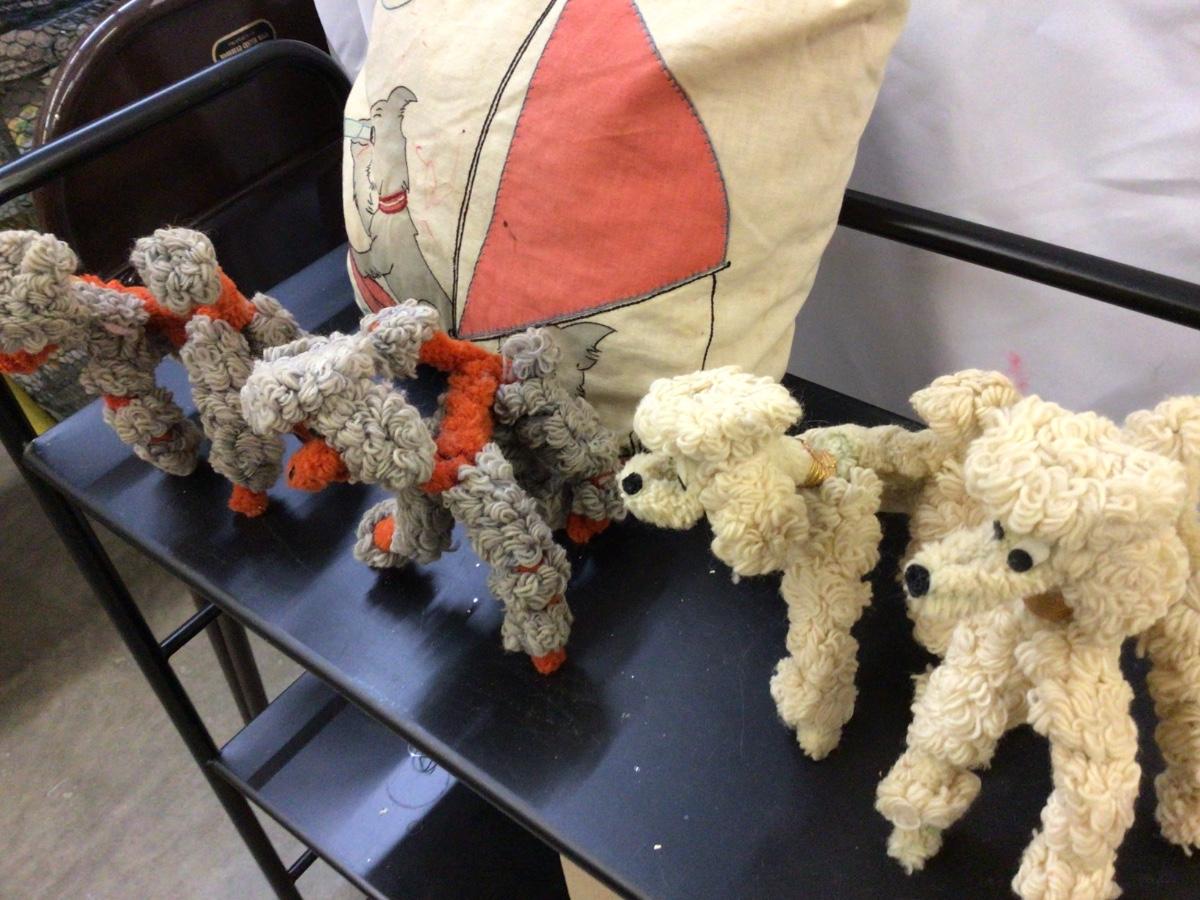 You get two sets of two white poodle and two gray poodle cloth dogs. Very cute very unusual. You also get a nice vintage pillow with dogs