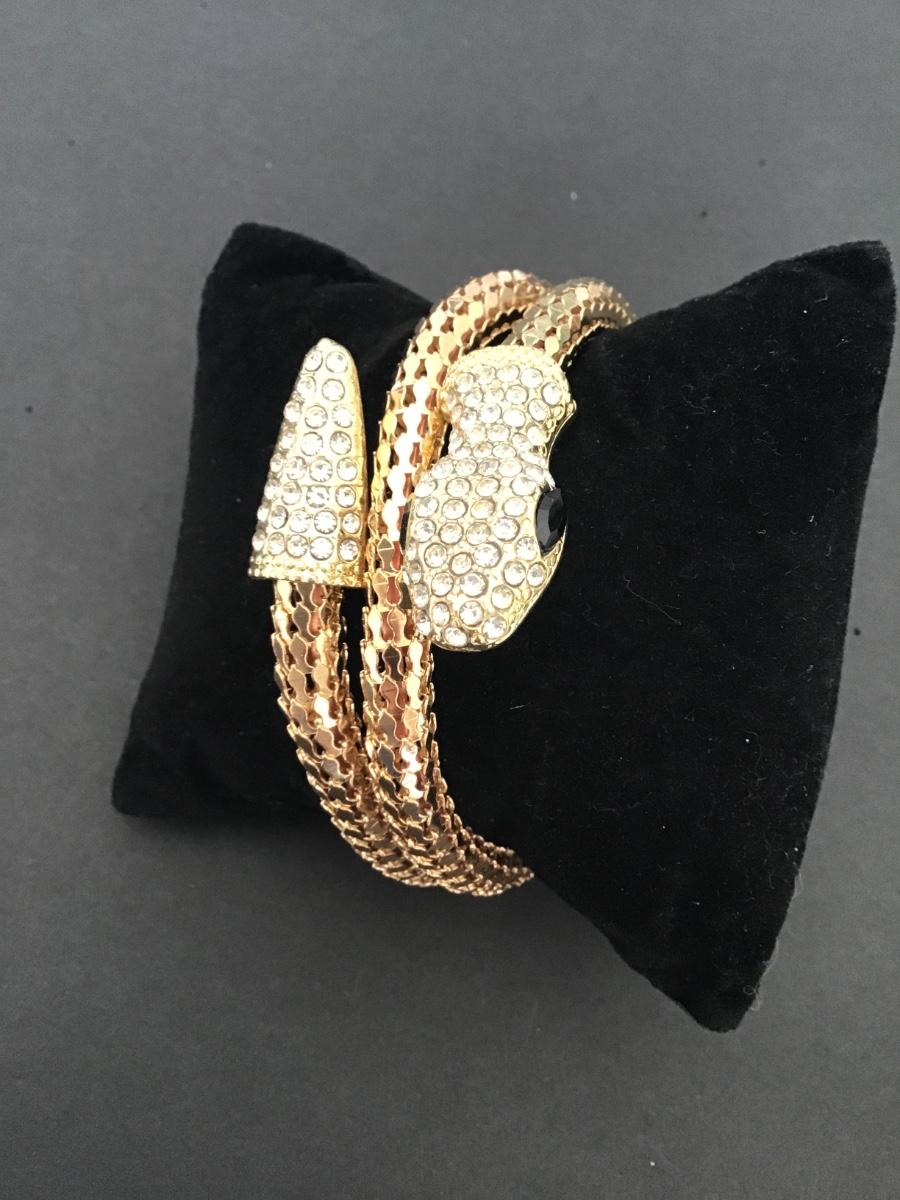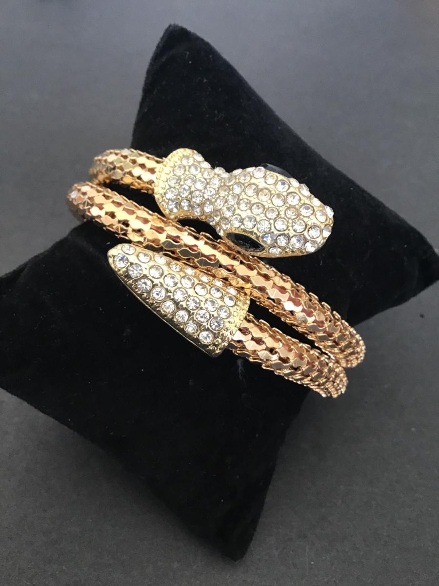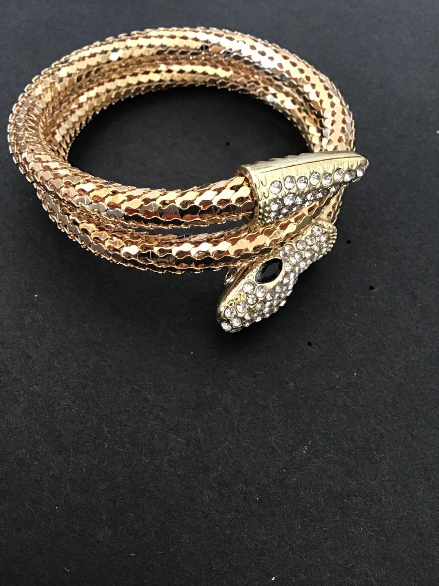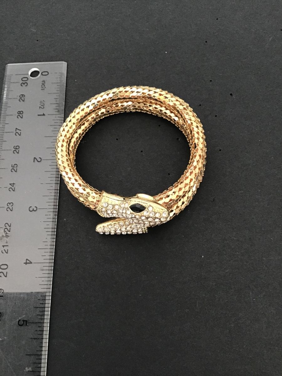 Very cool gold tone tube snake bracelet w clear rhinestones