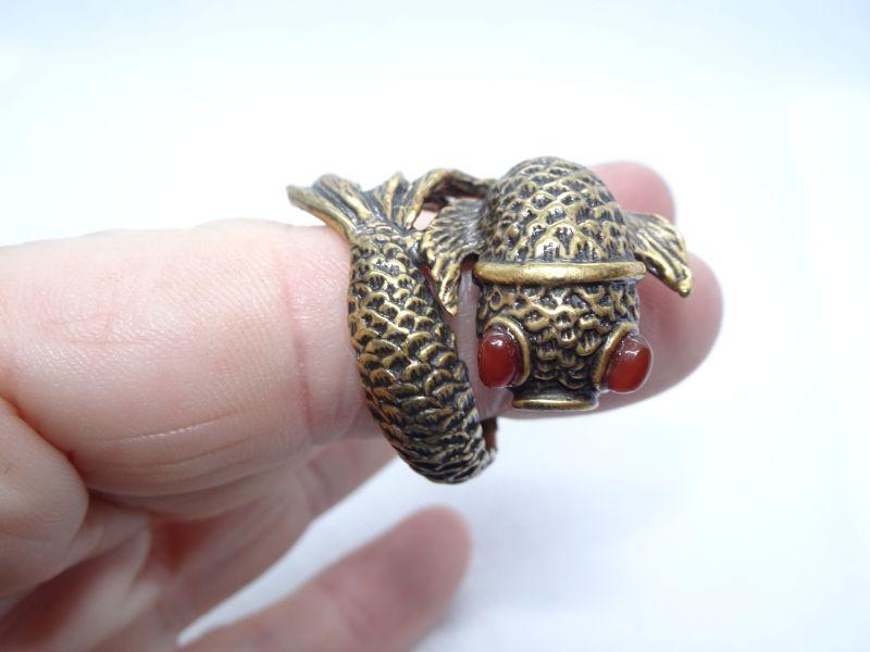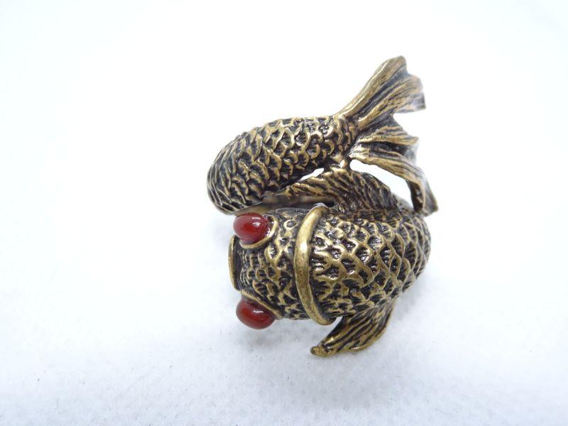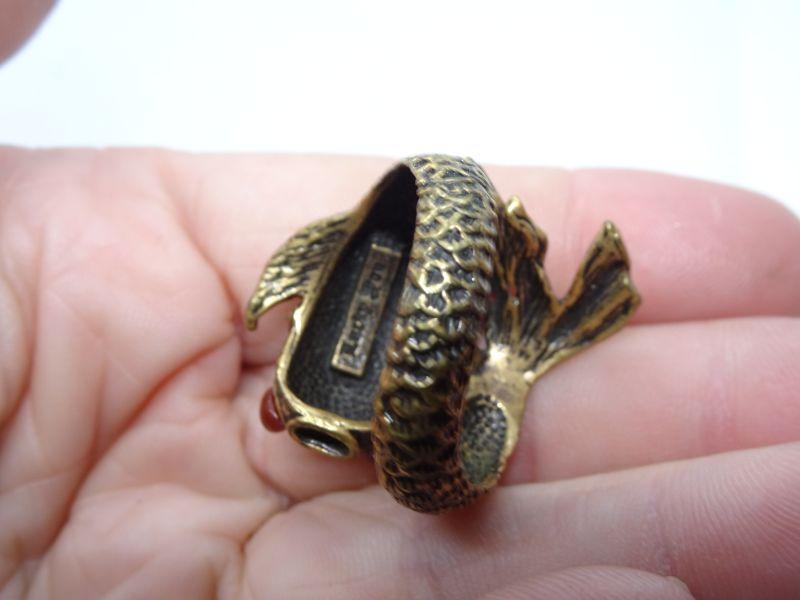 Very Cool Koi Fish Wrap Ring, Red Eyes, Signed "Lucky You"