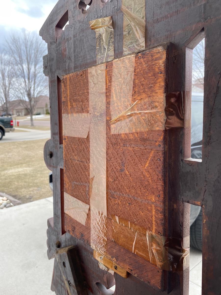 Does have some tape on front and in back holding up the mirror and crack in the wood.