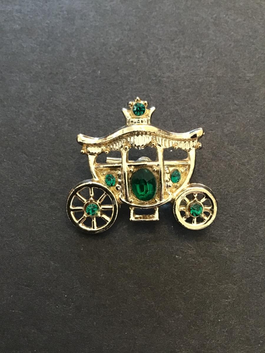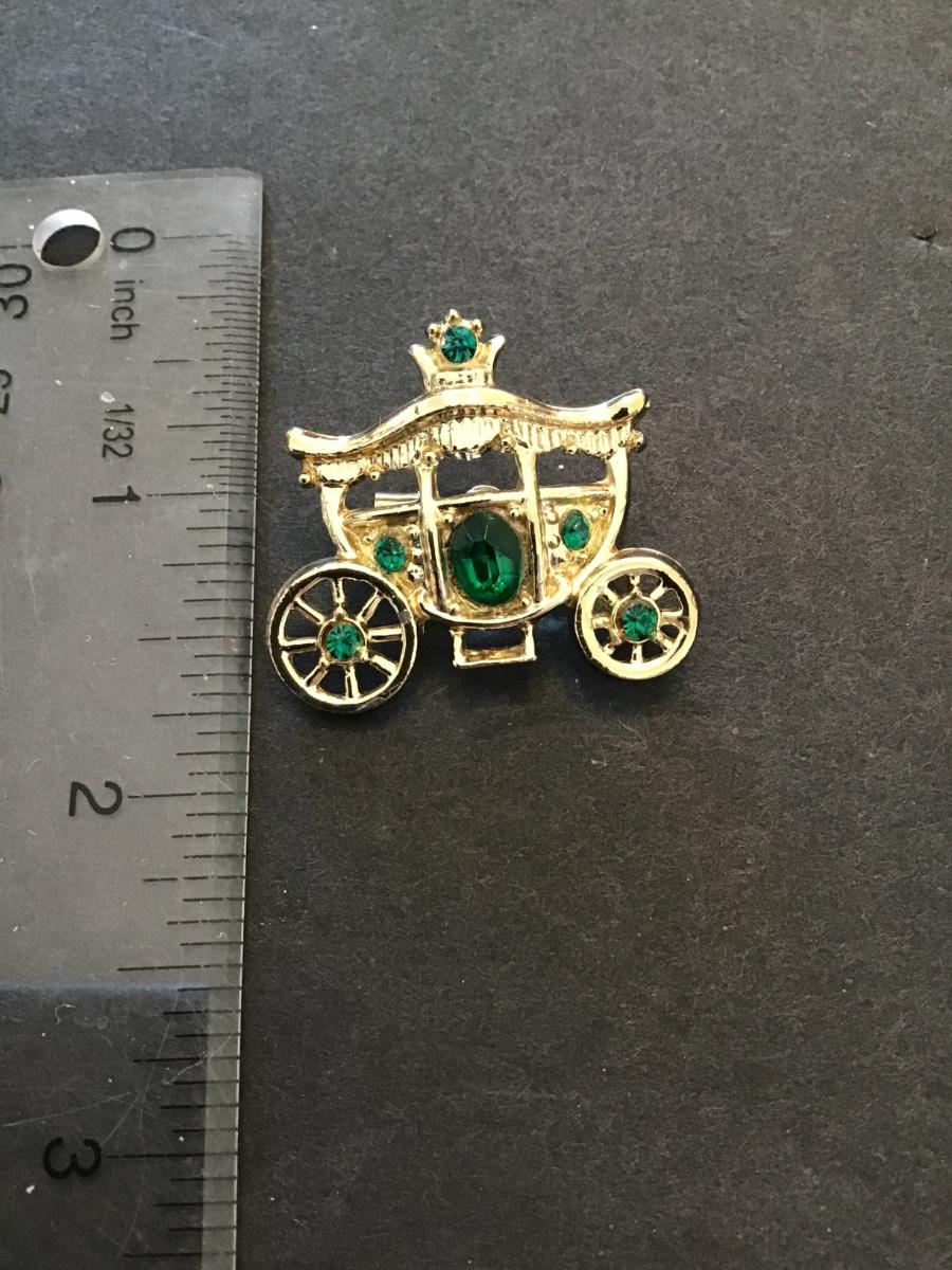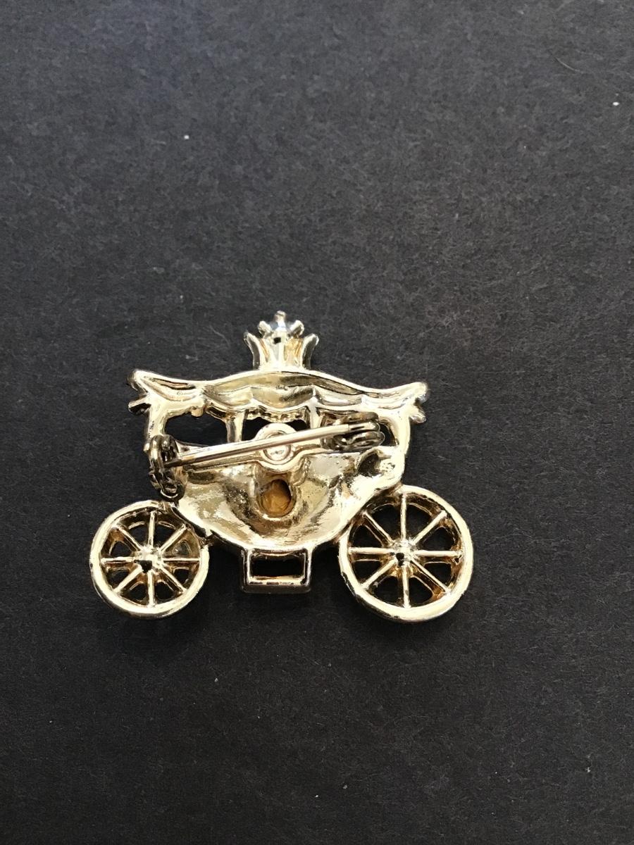 Very cute vintage carriage, brooch with rhinestones. Please see attached photos.