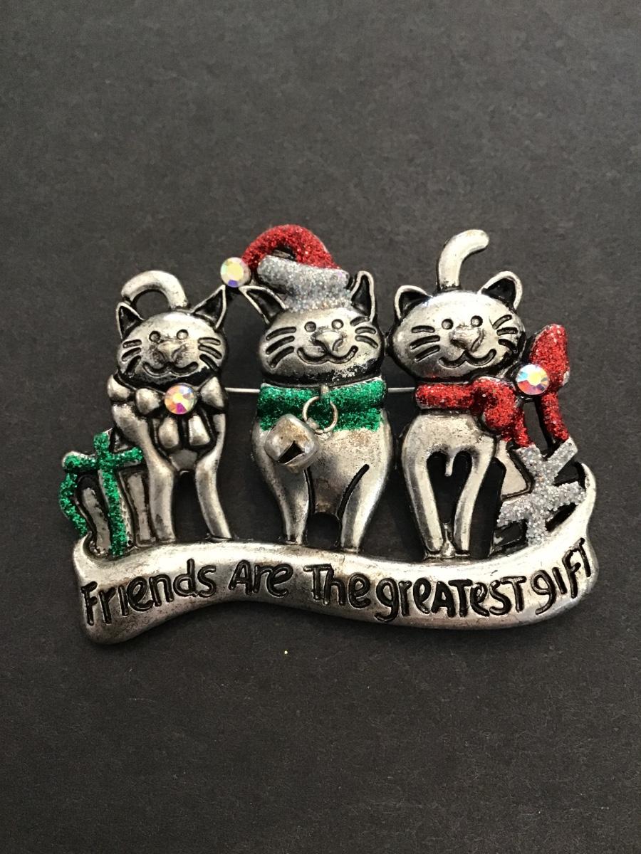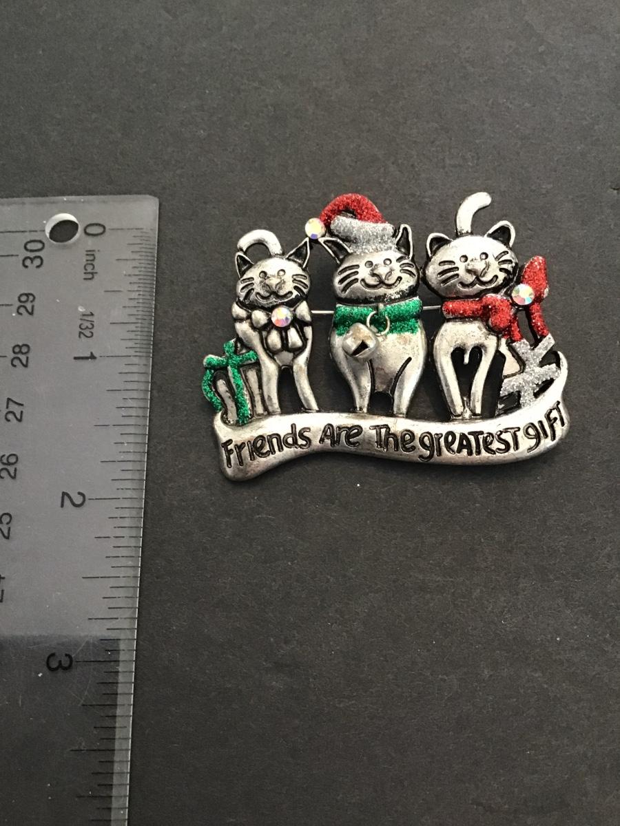 Very cute vintage Christmas cat brooch. Please see attached photos.