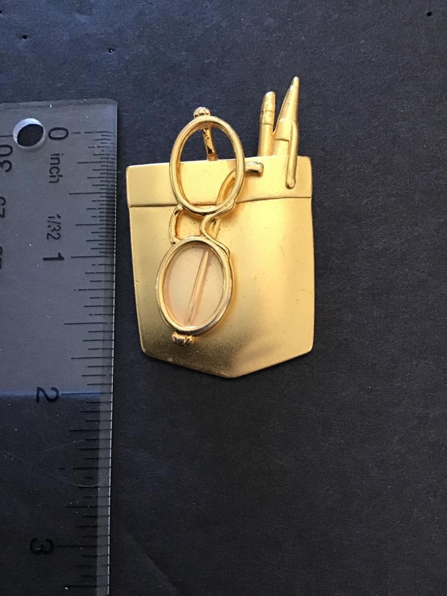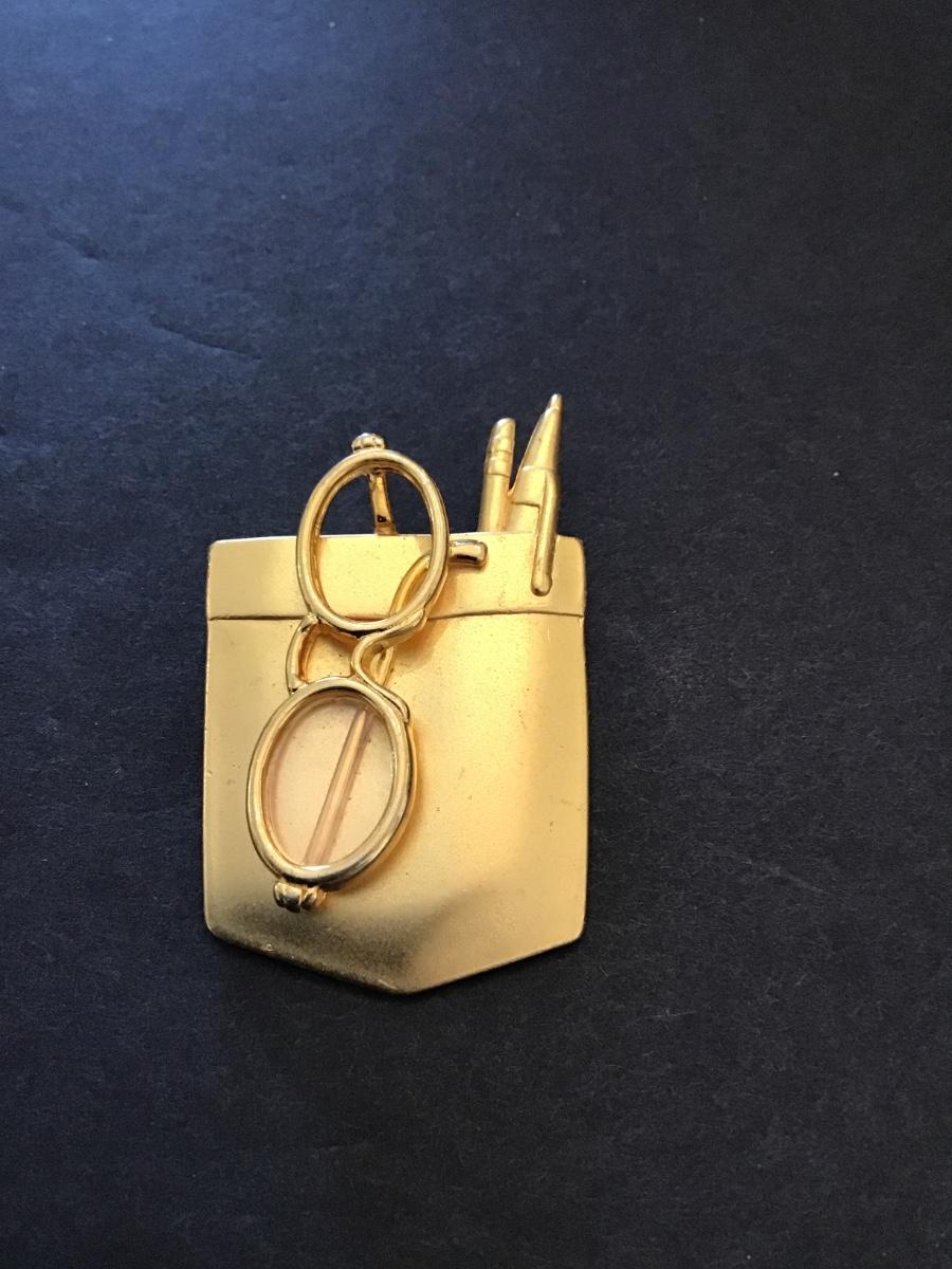 Very cute vintage, nerd pin pocket with glasses brooch. Please see attached photos.