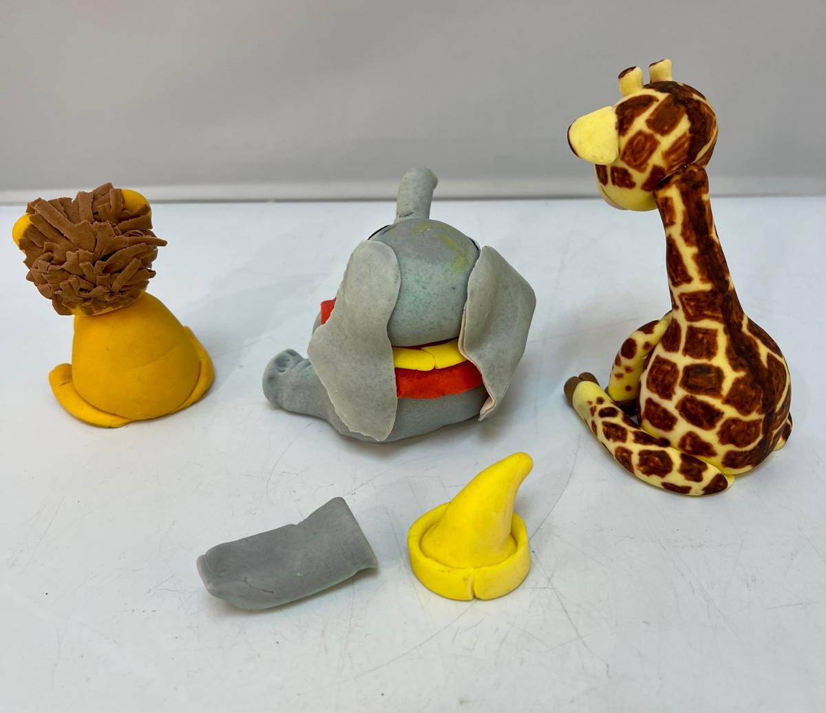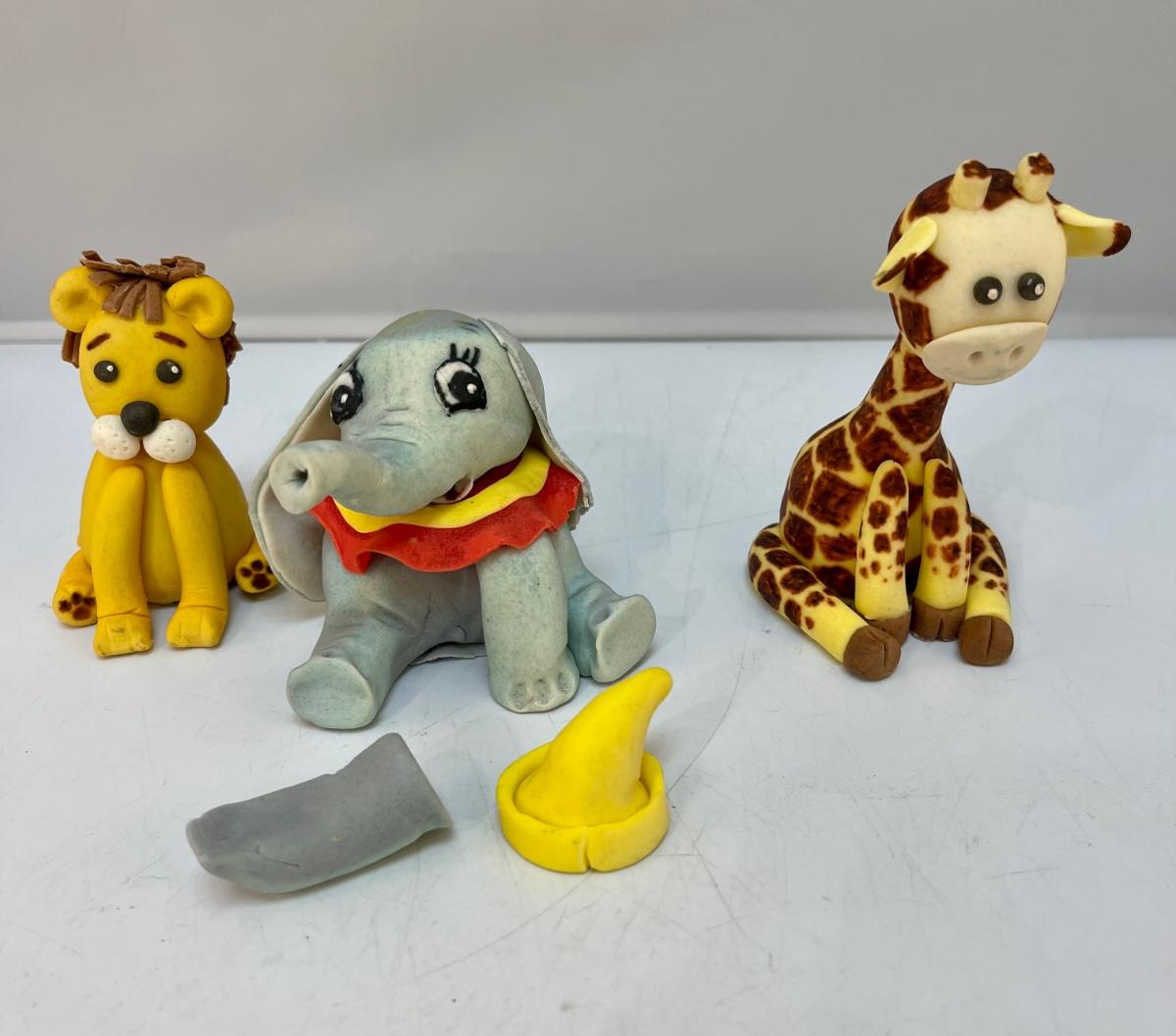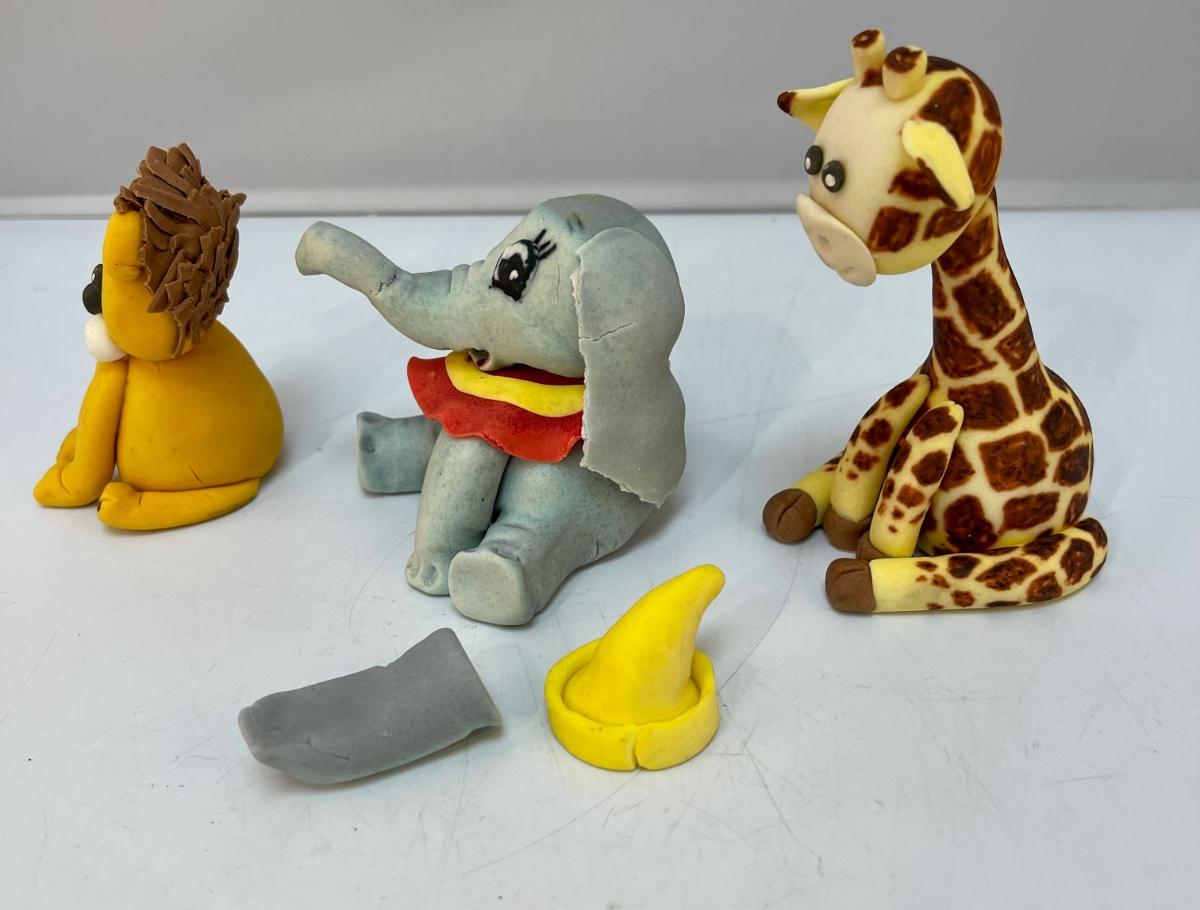 Fondant or Clay figurines used as cake toppers? Cute but very fragile. Some pieces have already broken off and heads are just barely hanging on.