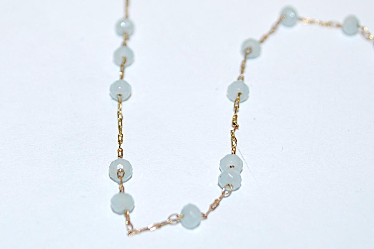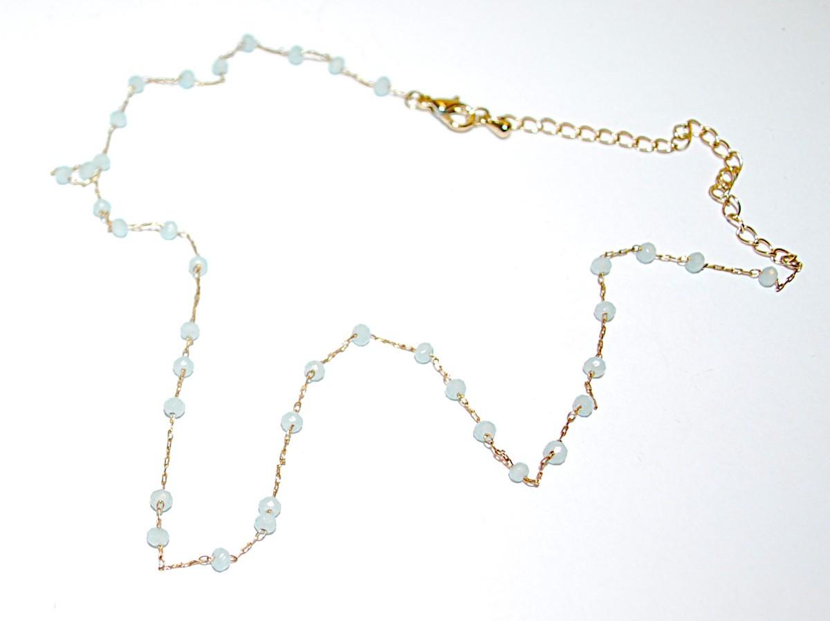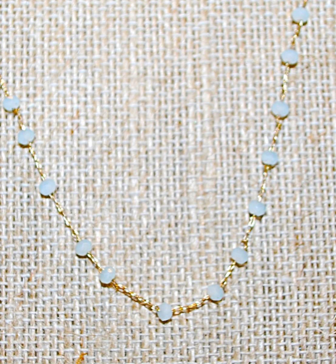VERY DELICATE Blue Opaque Stones NECKLACE on a Gold Tone Thin Necklace Chain and Lobster Clasp 17" L