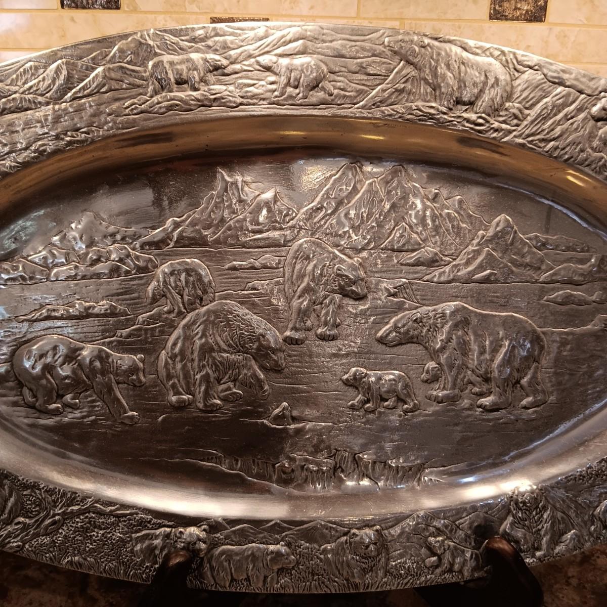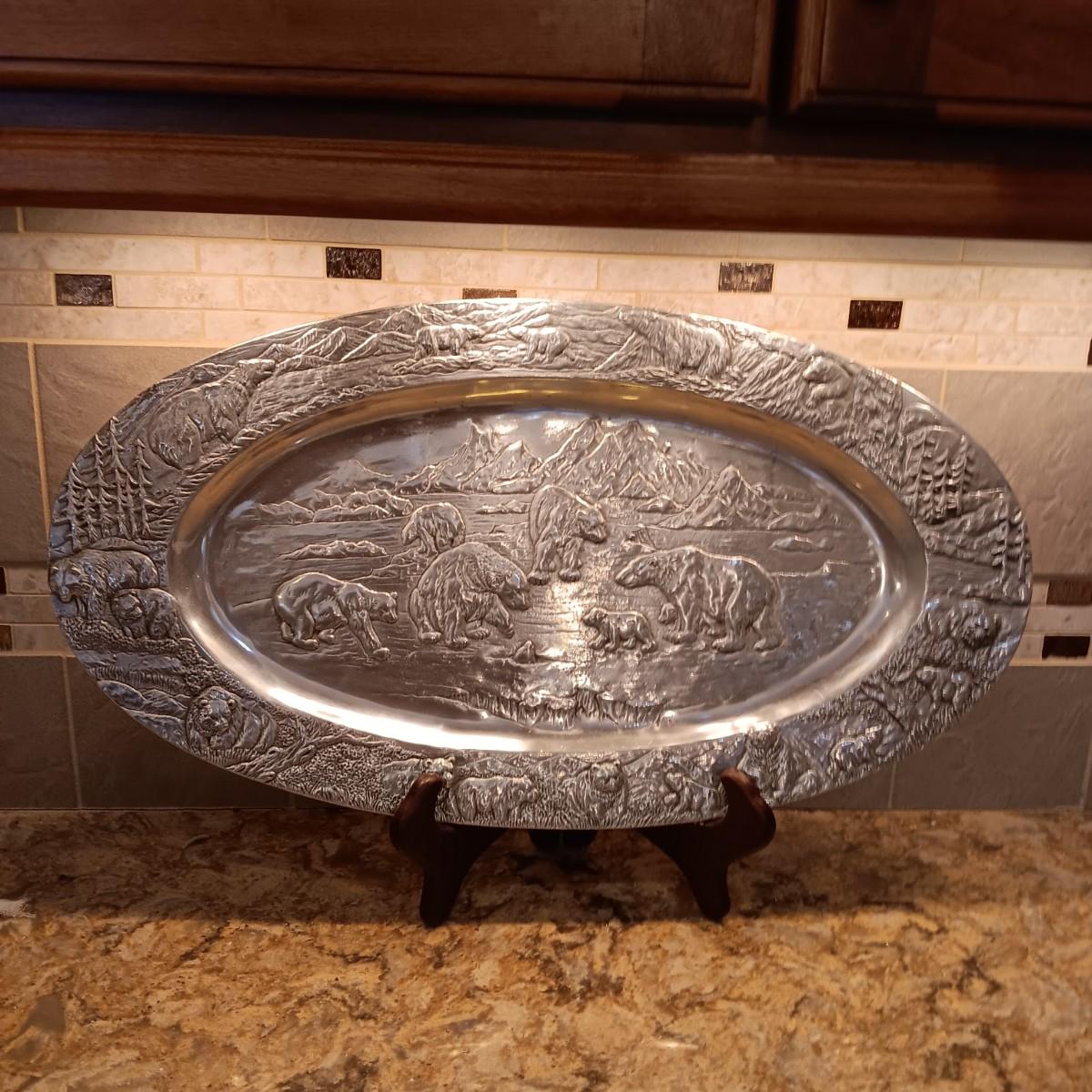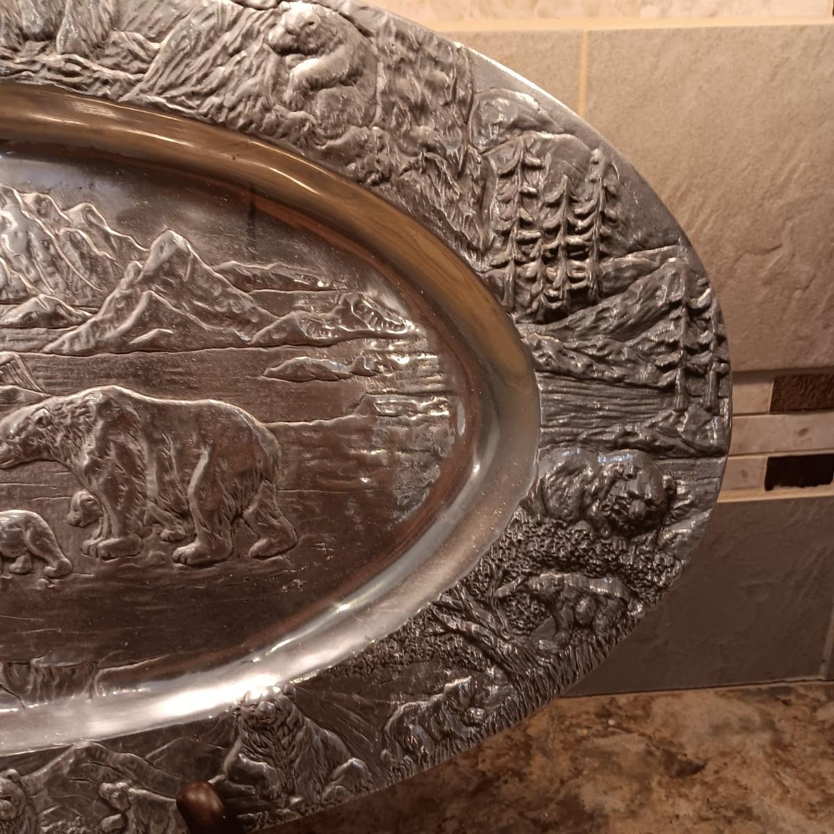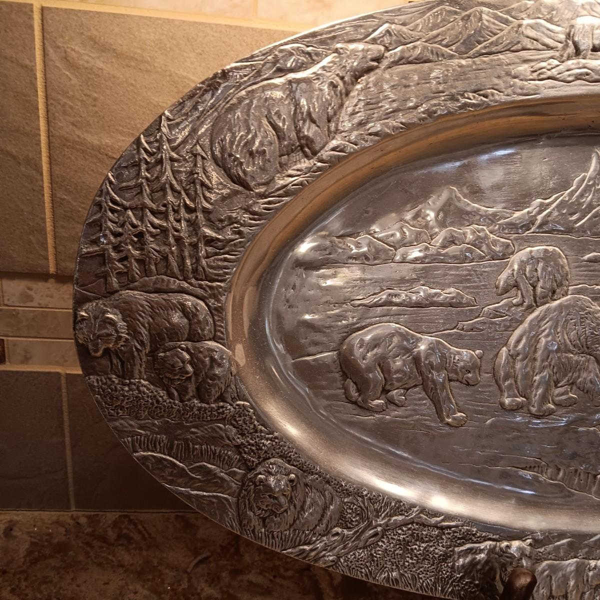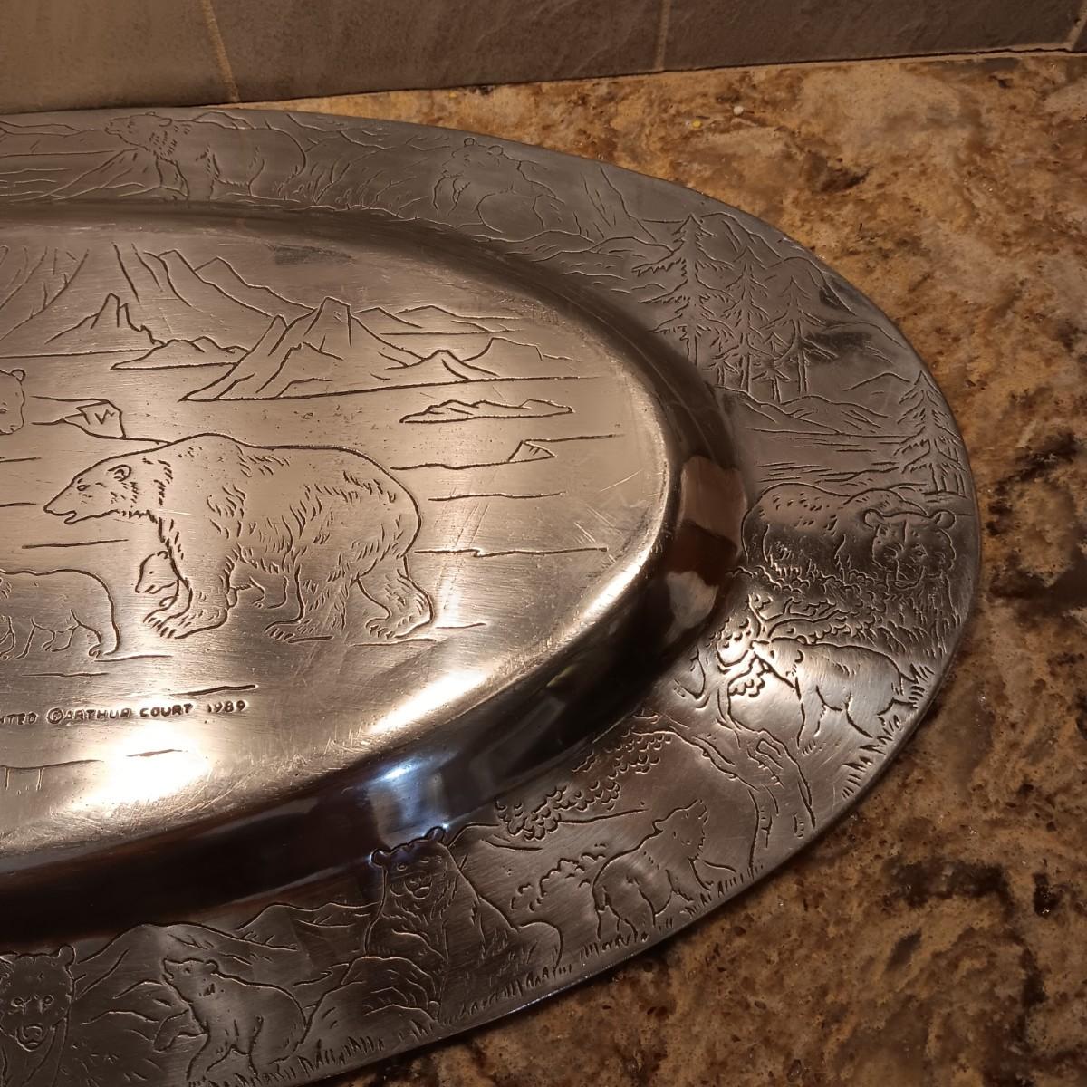 VERY DETAILED W/BEARS/FISH & BIRDS PEWTER PLATTER BY ARTHUR COURT