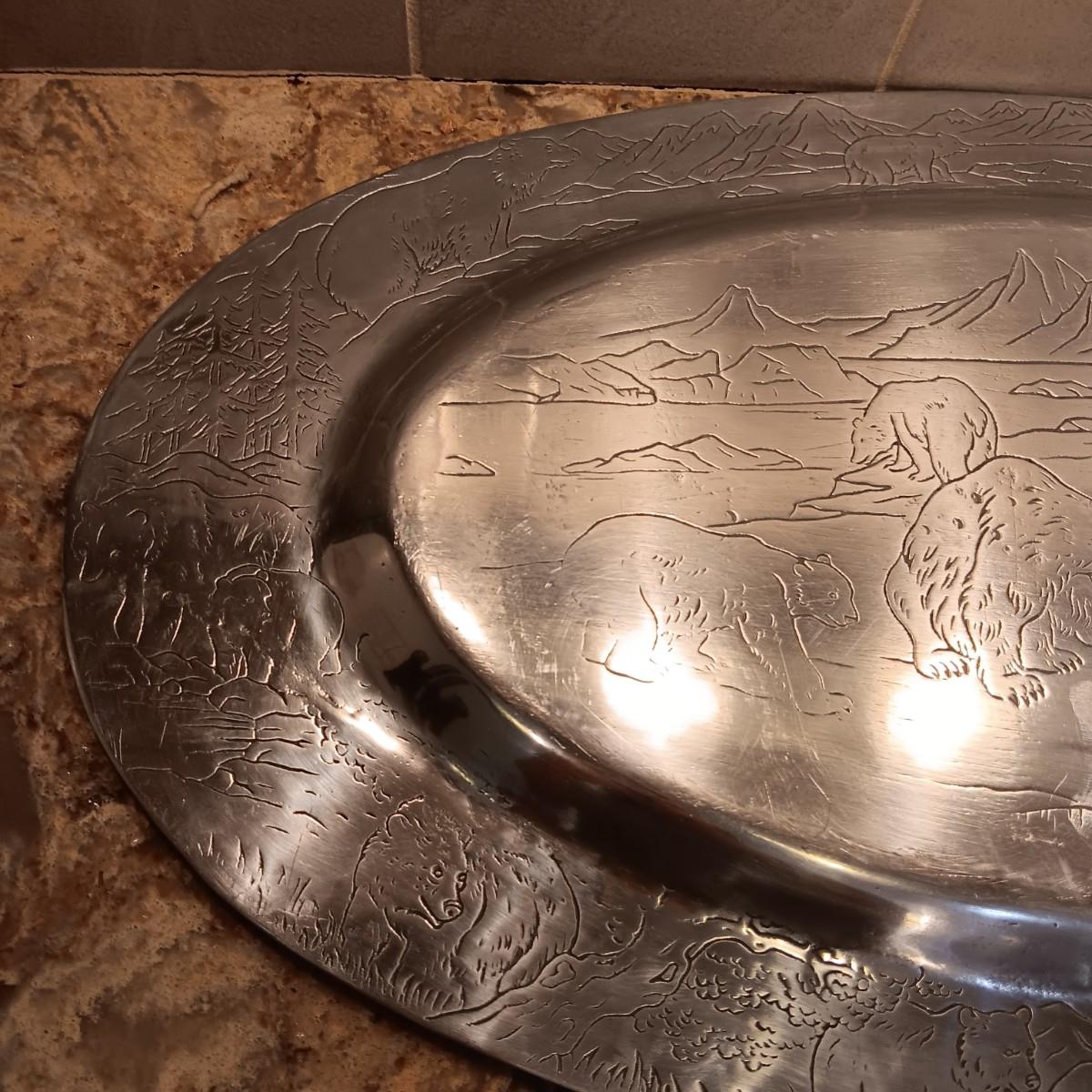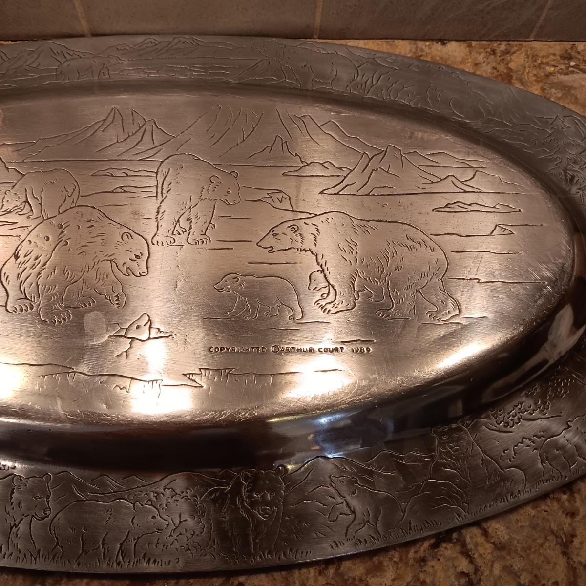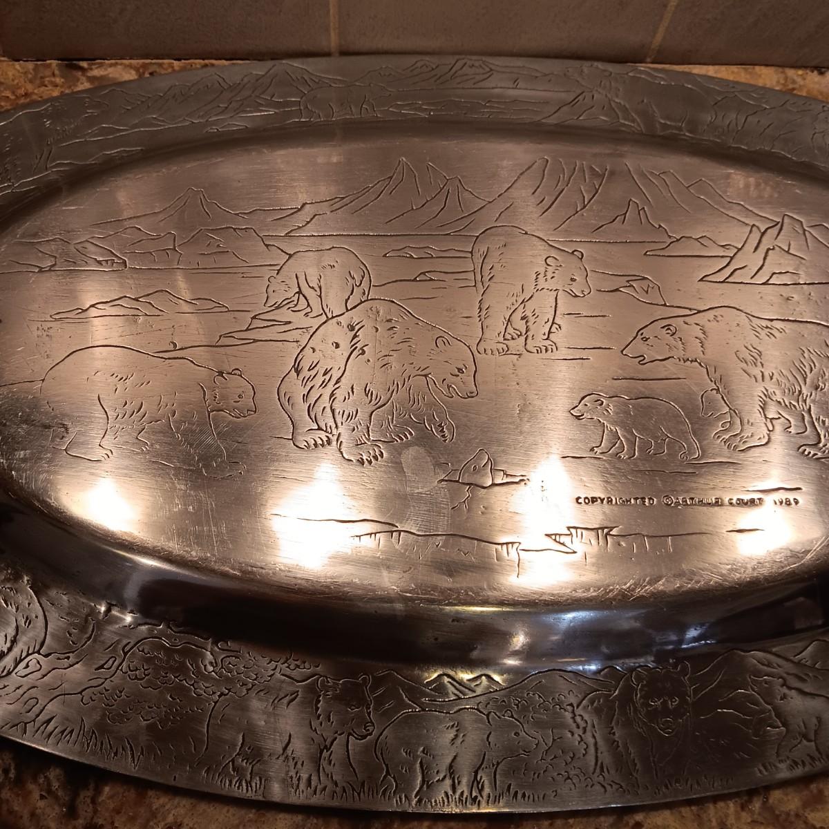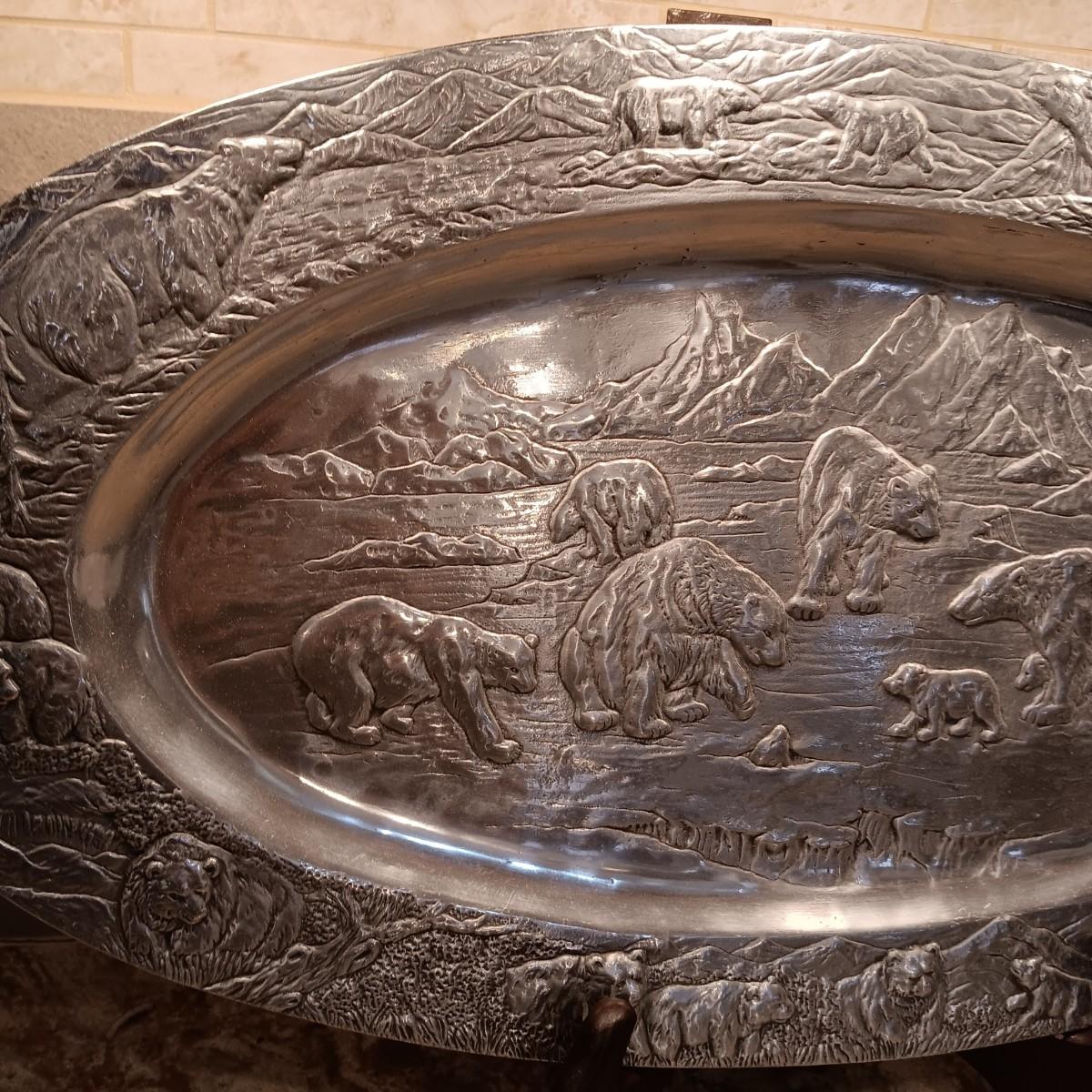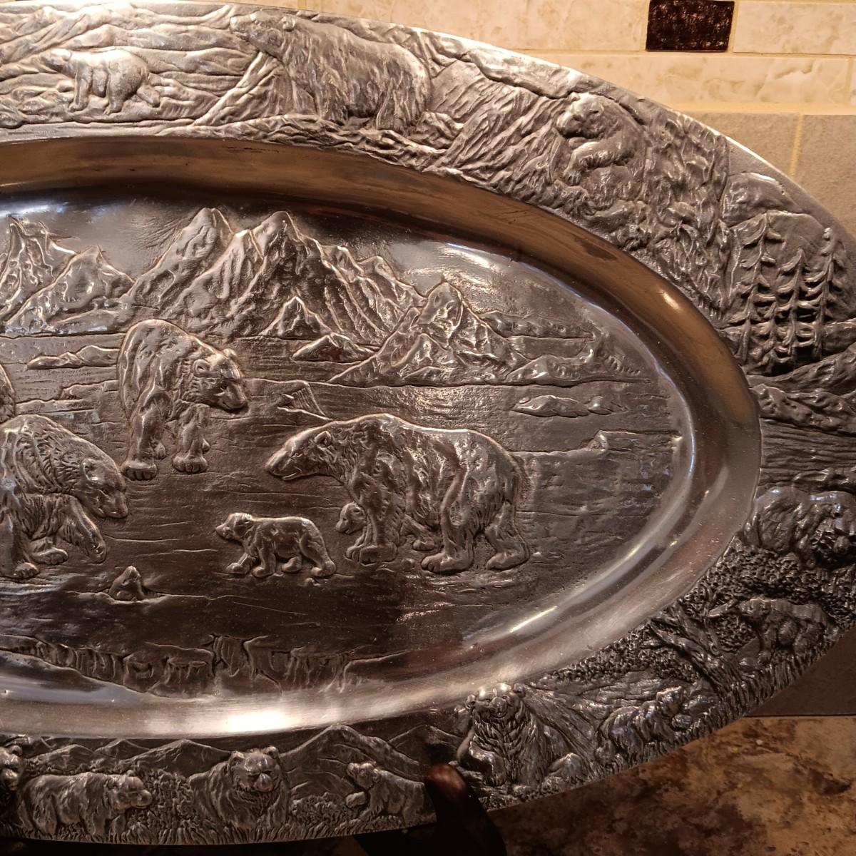 VERY DETAILED W/BEARS/FISH & BIRDS PEWTER PLATTER BY ARTHUR COURT