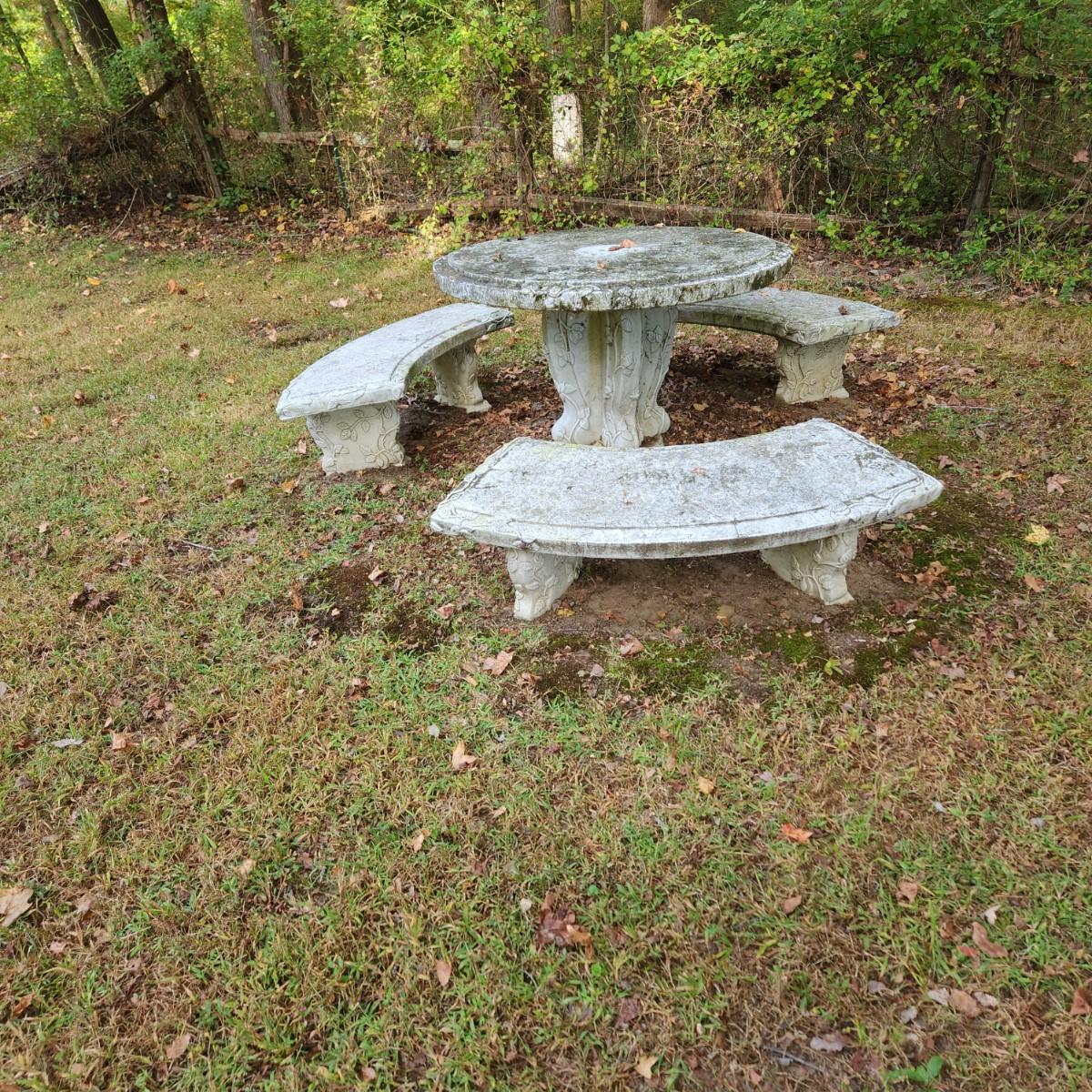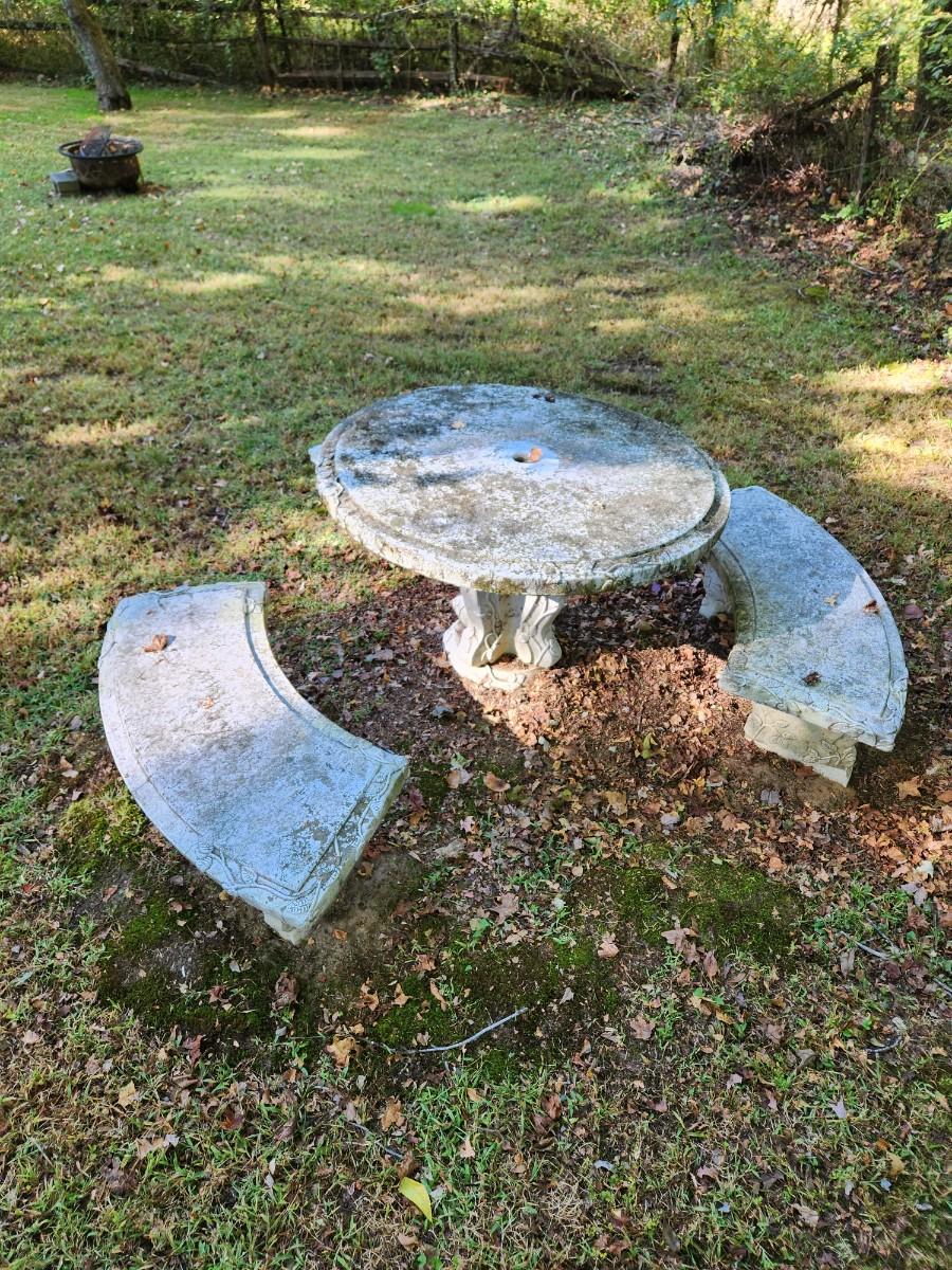 Very Heavy 46" Diameter Concrete Patio Table and 3 Benches