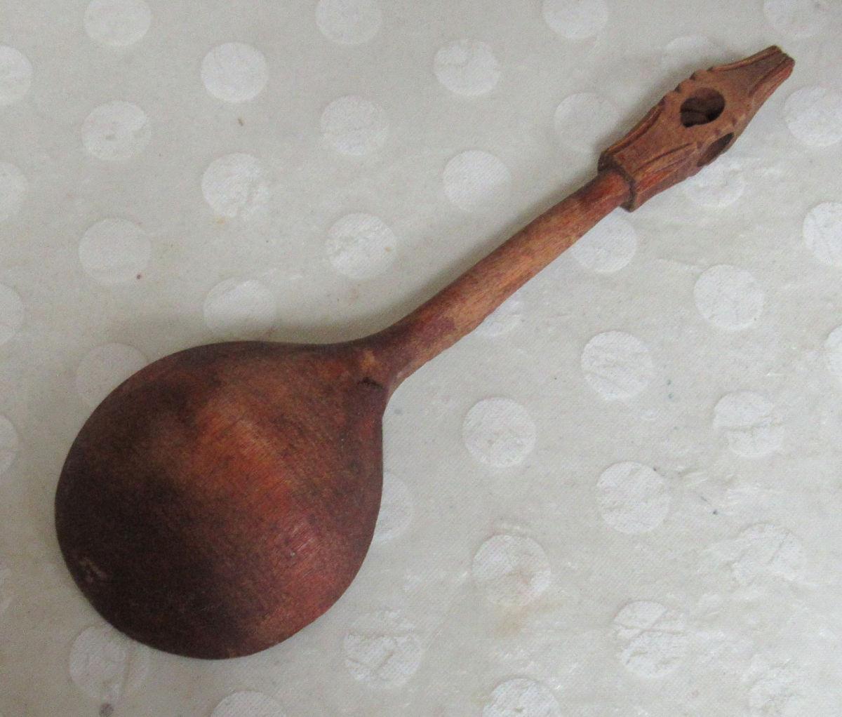 Very Interesting Antique Hand Painted Spoon With Carved Ball Inside Handle Most Likeky Sweden