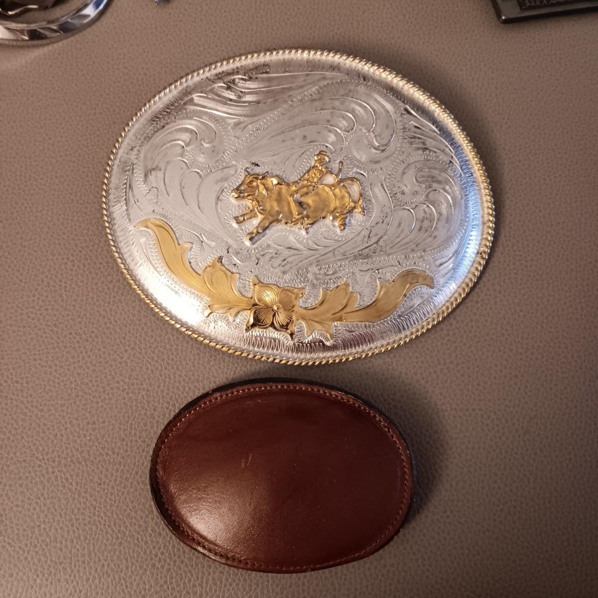 VERY LARGE RODEO AND TONY LAMA LEATHER BELT BUCKLES