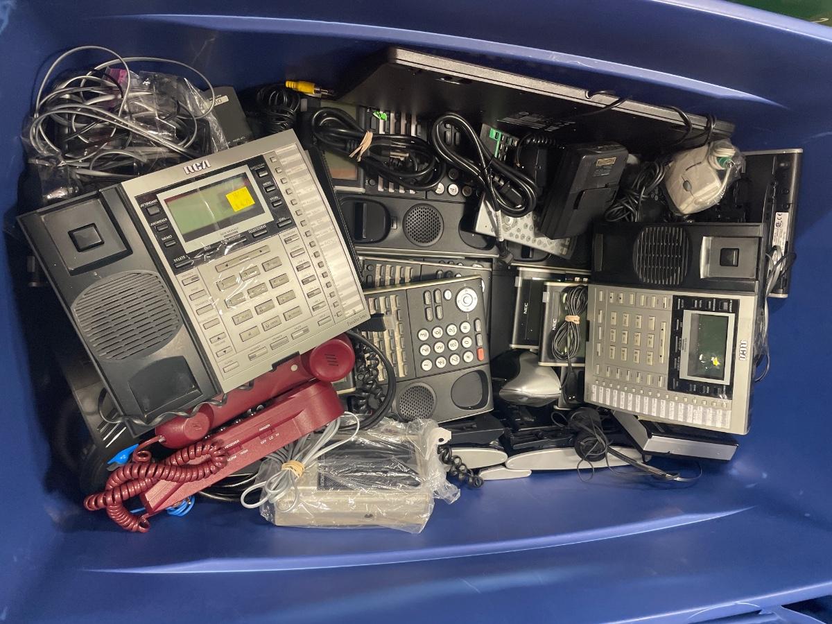 Very large tote full of office phones