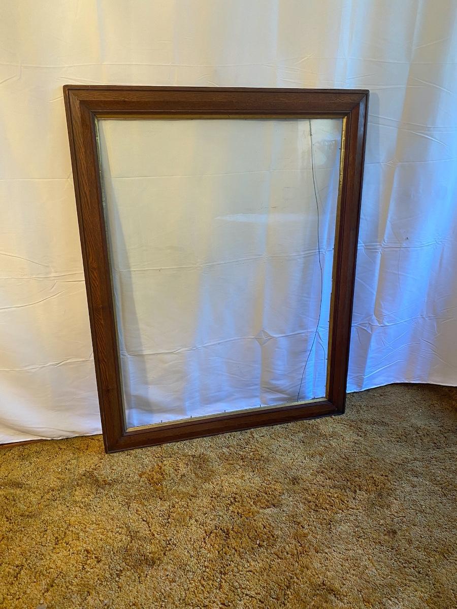 Huge old wood frame in good condition. . Height 47", Width 36" and Depth 1' with glass