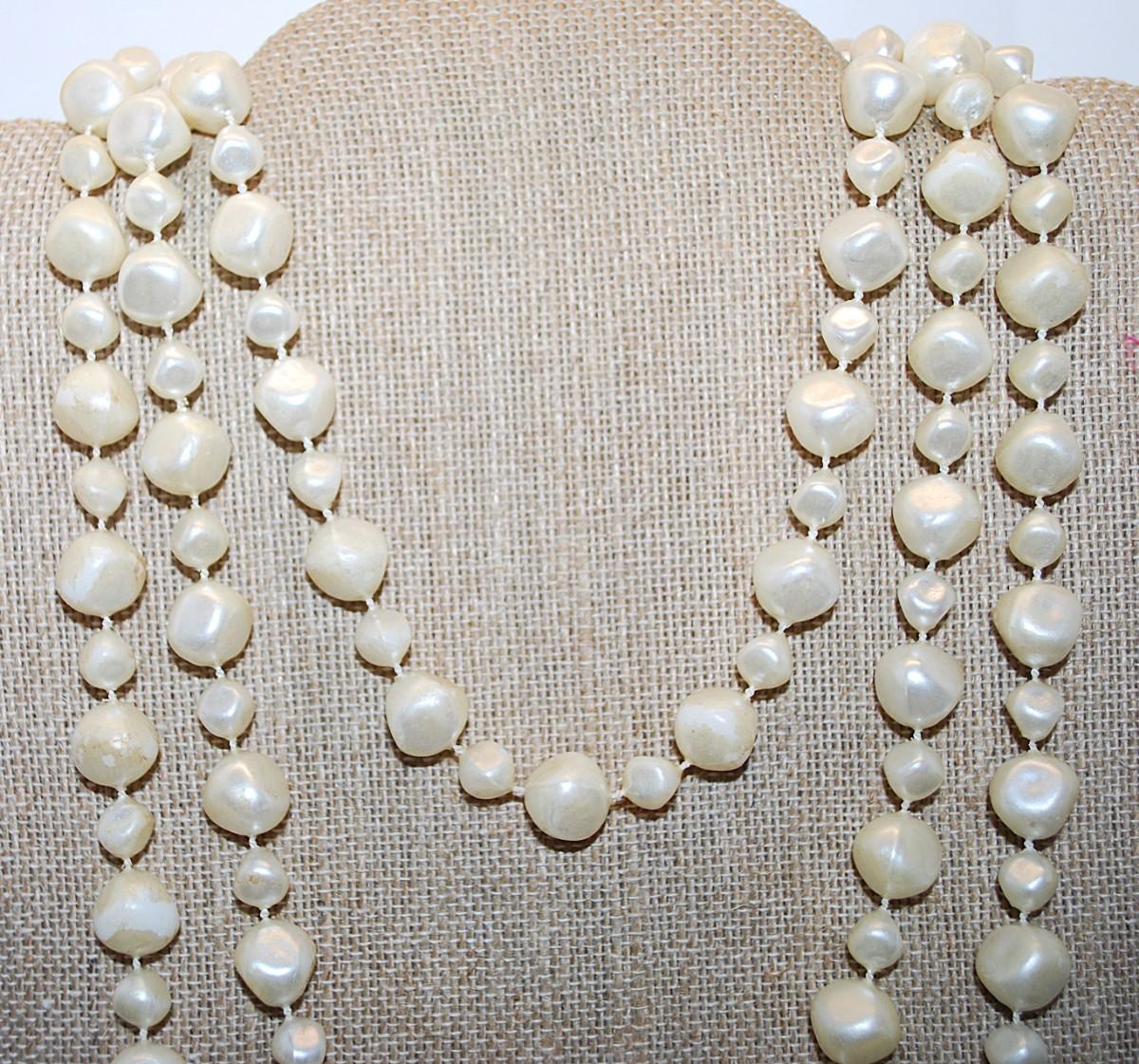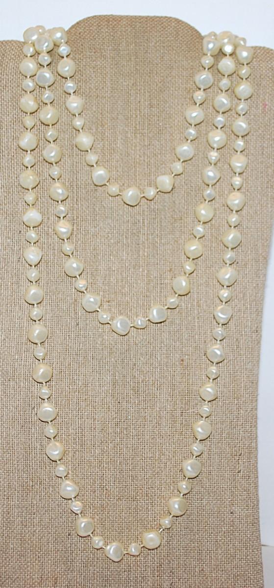 Very Long WRAP-AROUND Pearl-Style Shiny White Beads NECKLACE with Irregular Assorted Shapes 72" L