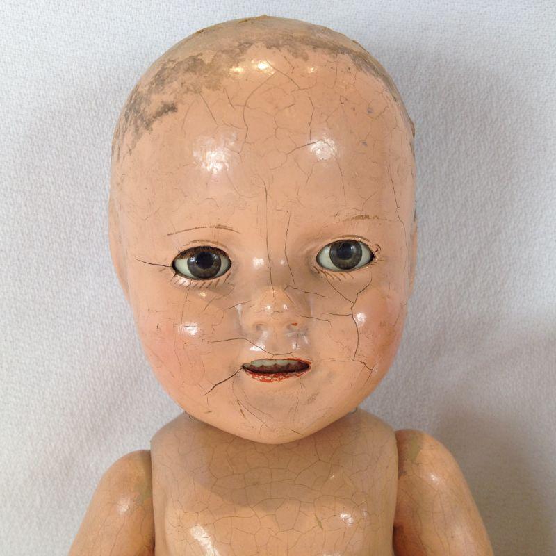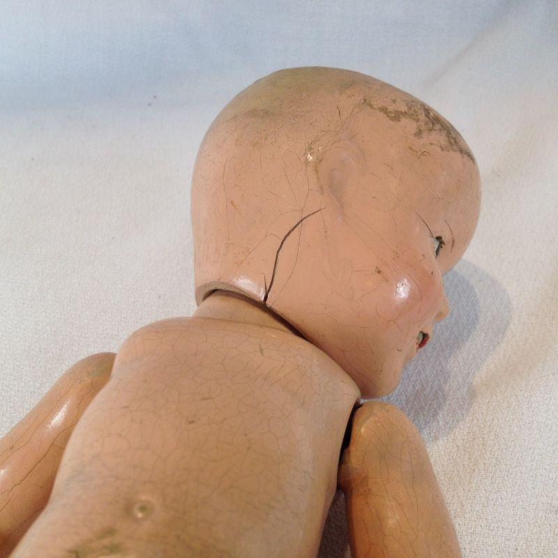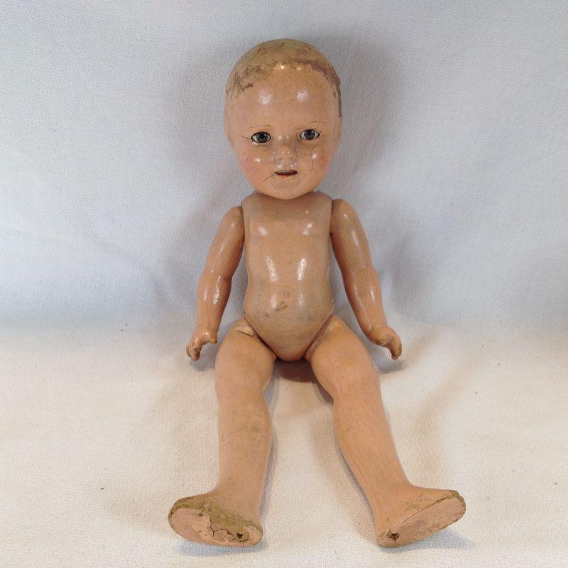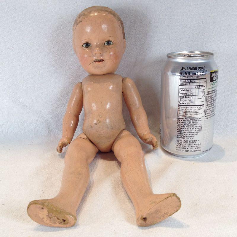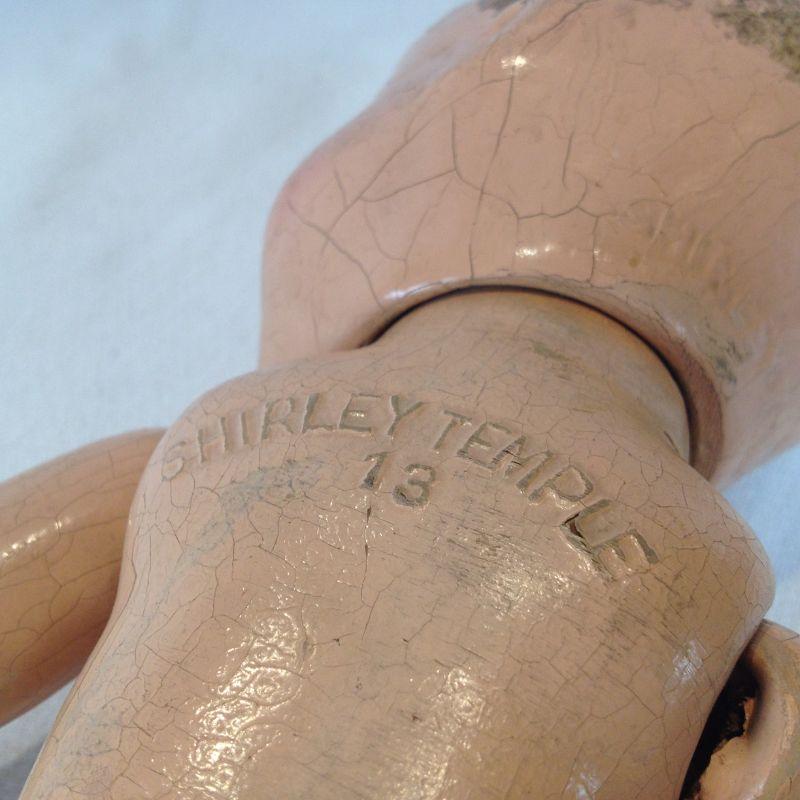 This is a vintage Shirley Temple doll, marked #13, She has been well loved and played with. Client really wanted us to put the doll up for auction in case someone may want to repair, restore or use the best of her for parts. She no longer has her curls but her eyes still open and close. She is sold as is and measures 12-inches long.