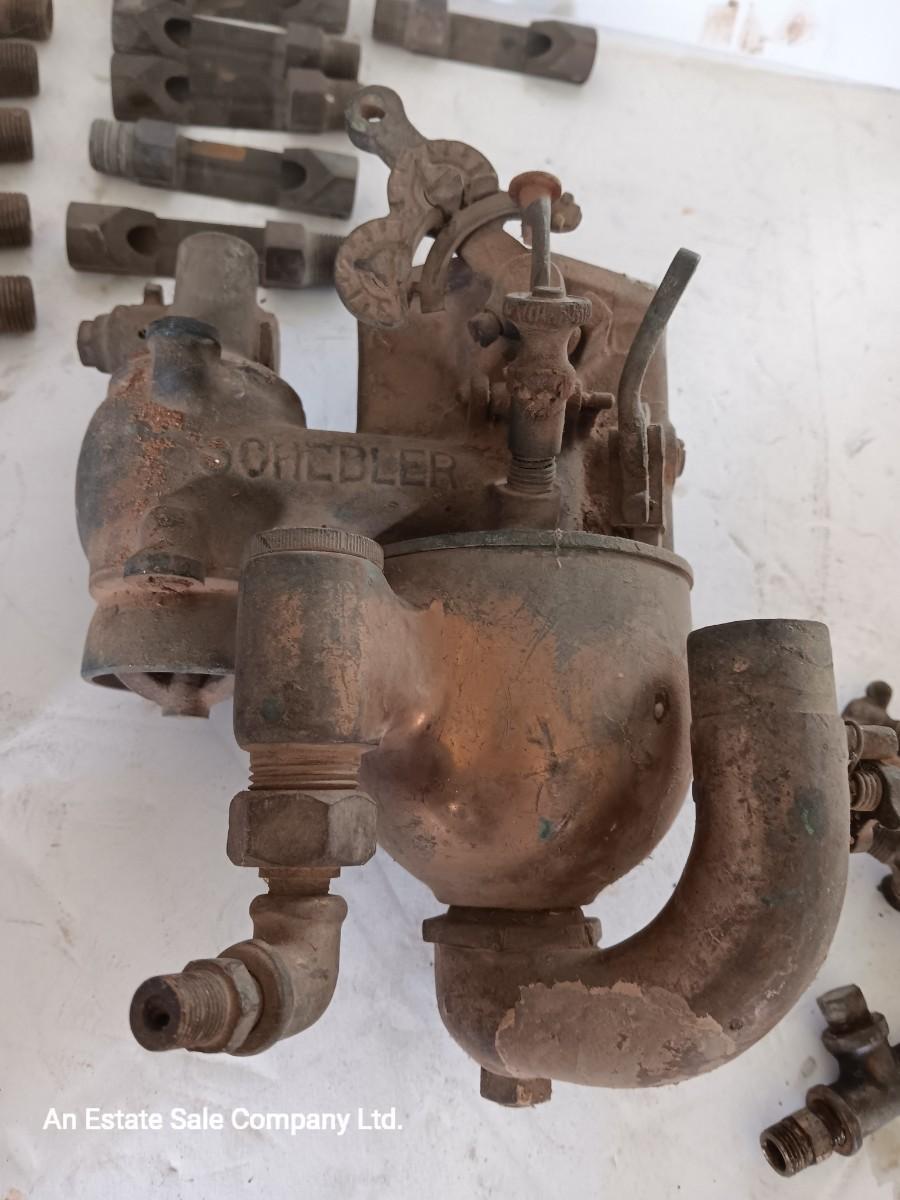 Antique Brass SCHEBLER Model "L" BRASS CARBURETOR PAT. 1907 with brass fittings - doubt the brass fittings go with the carburetor.