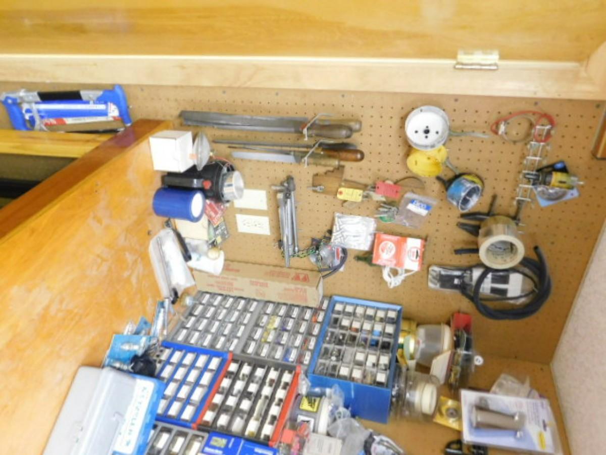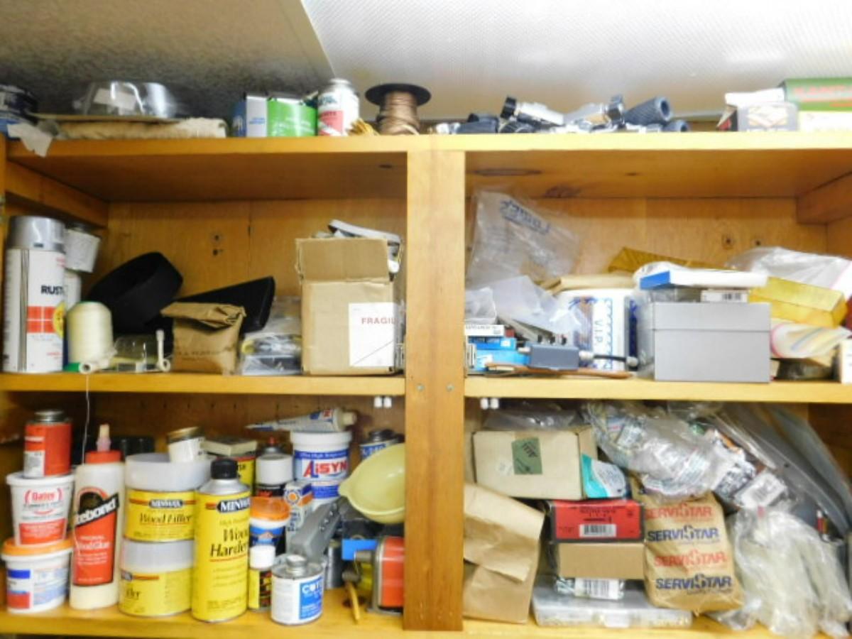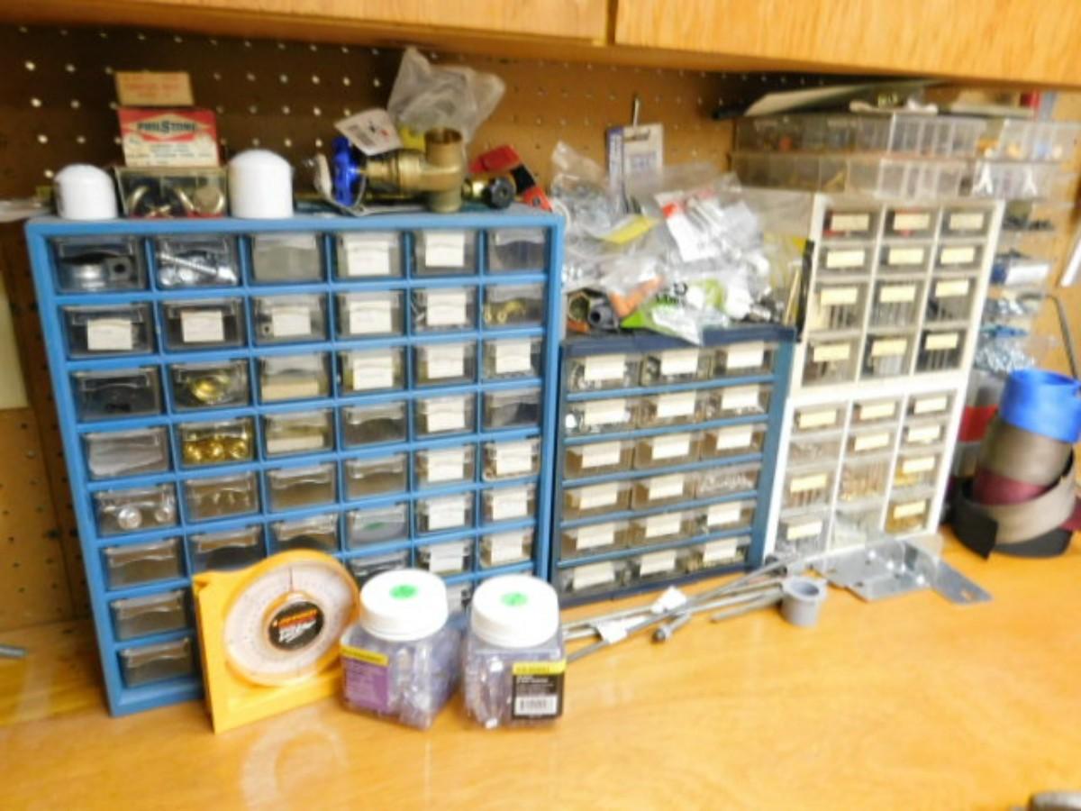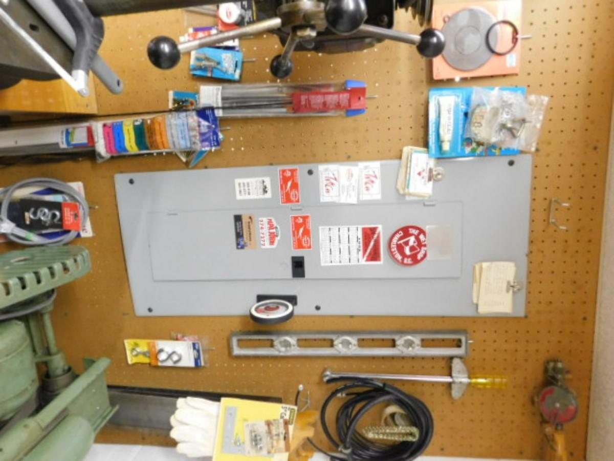 Collection of Tools and Accessories (See Description Below) Choice B. Does not include any lamps, vises, shelves, cabinets, or peg board. Drill press is excluded Must take all. Bring boxes for packing.