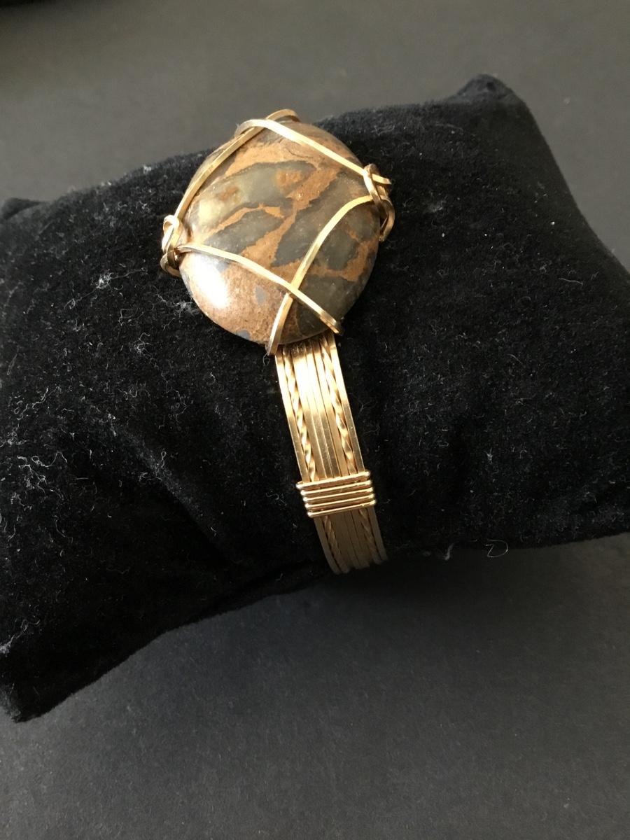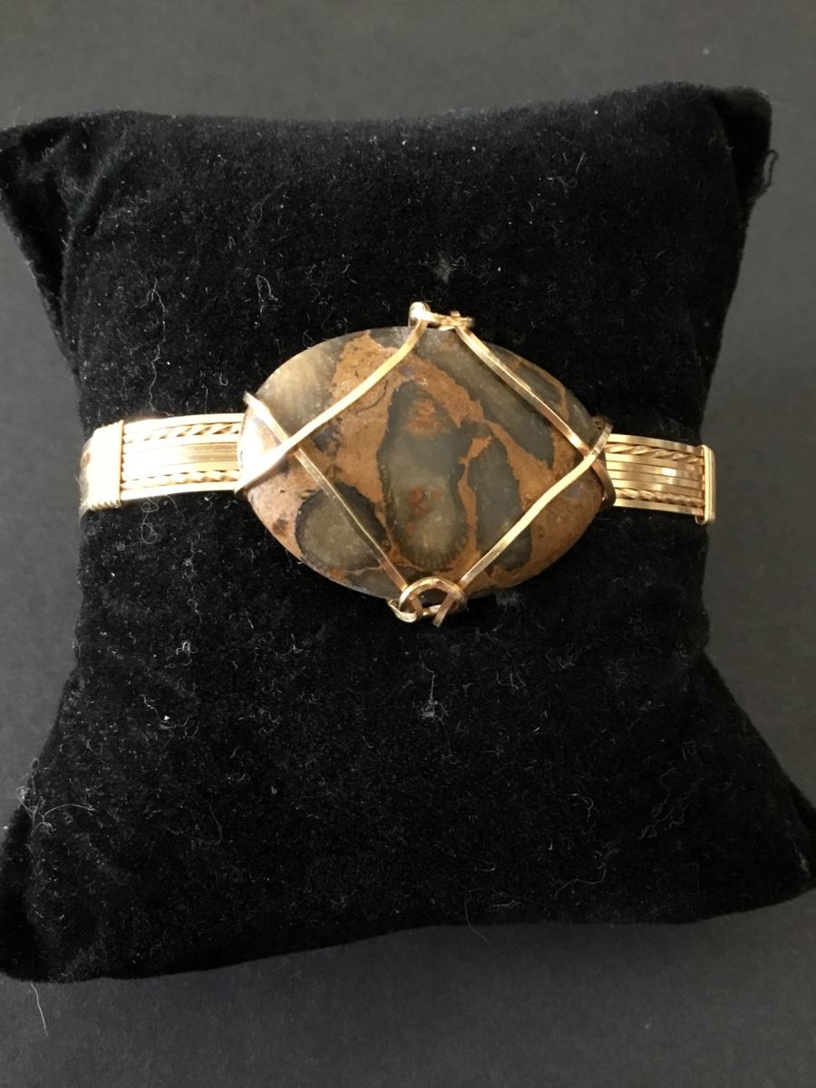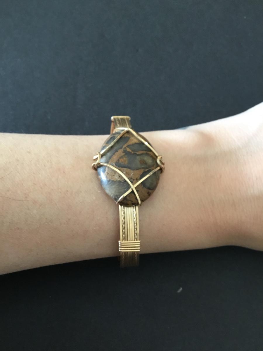 Very nice beautifully handcrafted, gold tone, jasper stone, locking bracelet