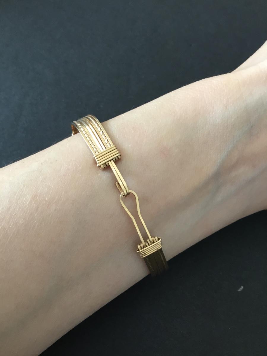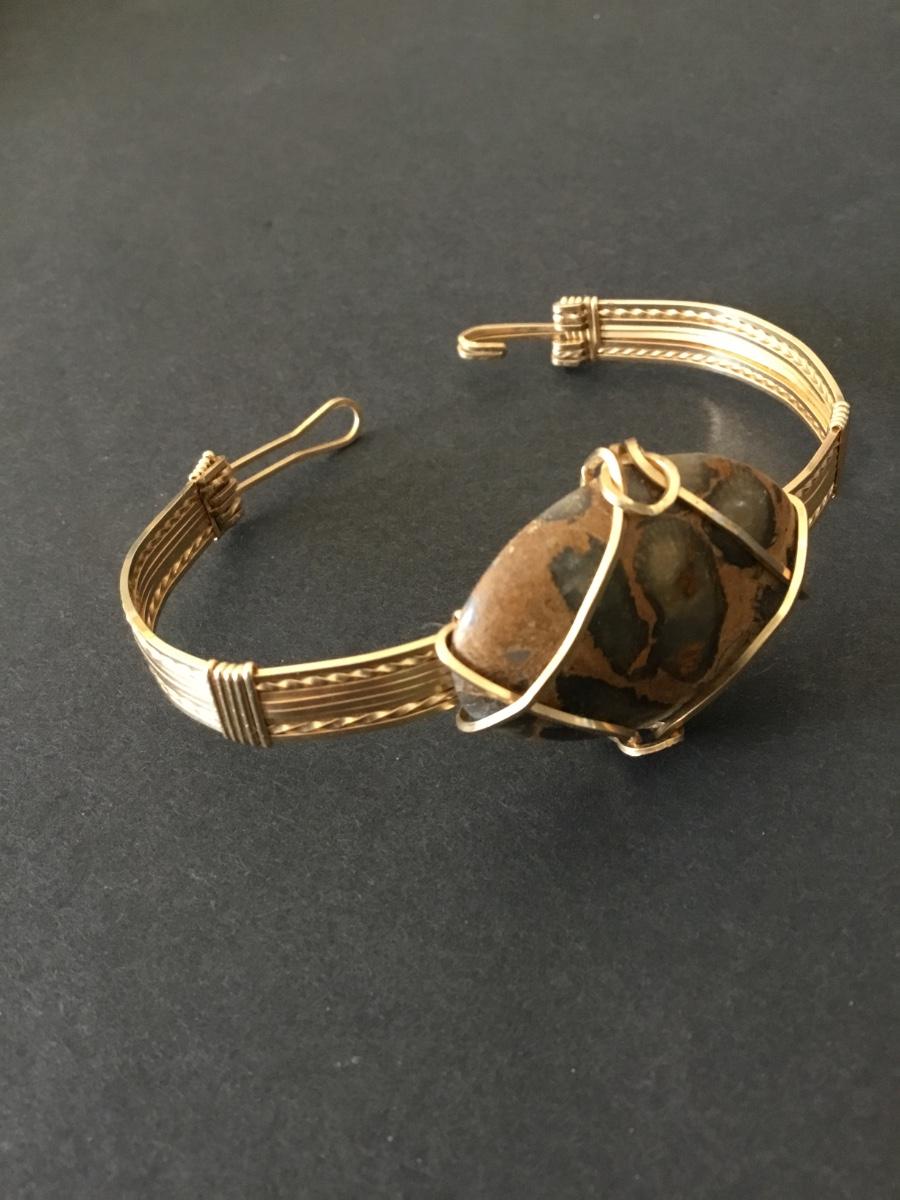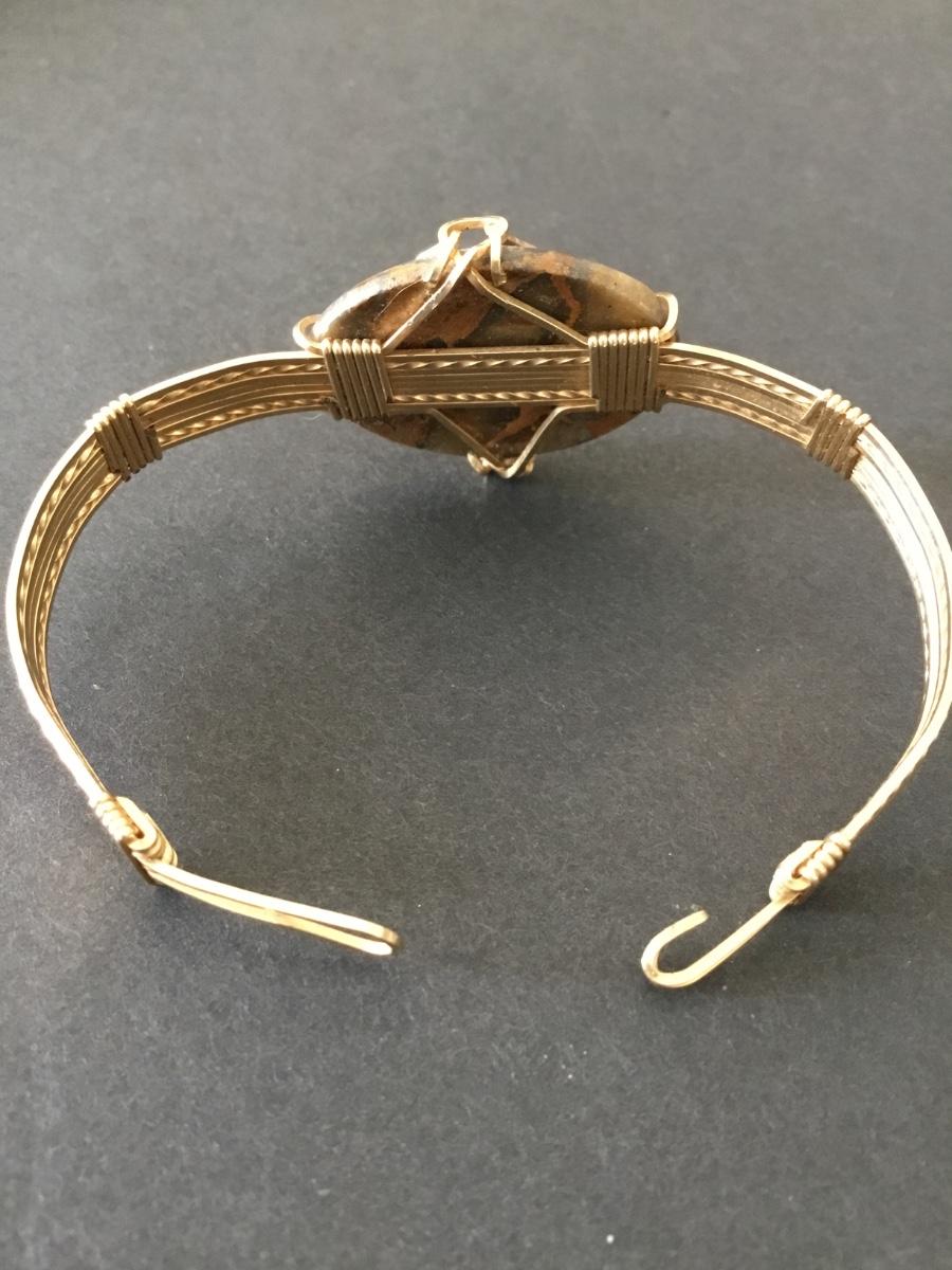 Very nice beautifully handcrafted, gold tone, jasper stone, locking bracelet