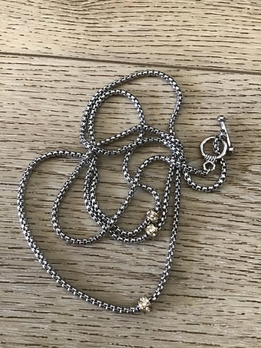 Very nice Cable, chain, toggle necklace, crystal rhinestone bead necklace