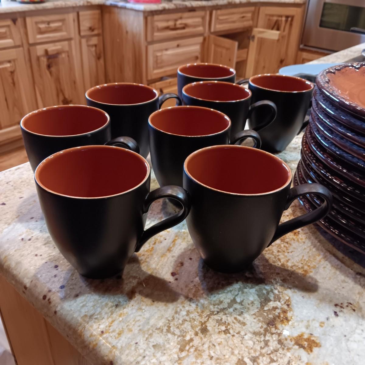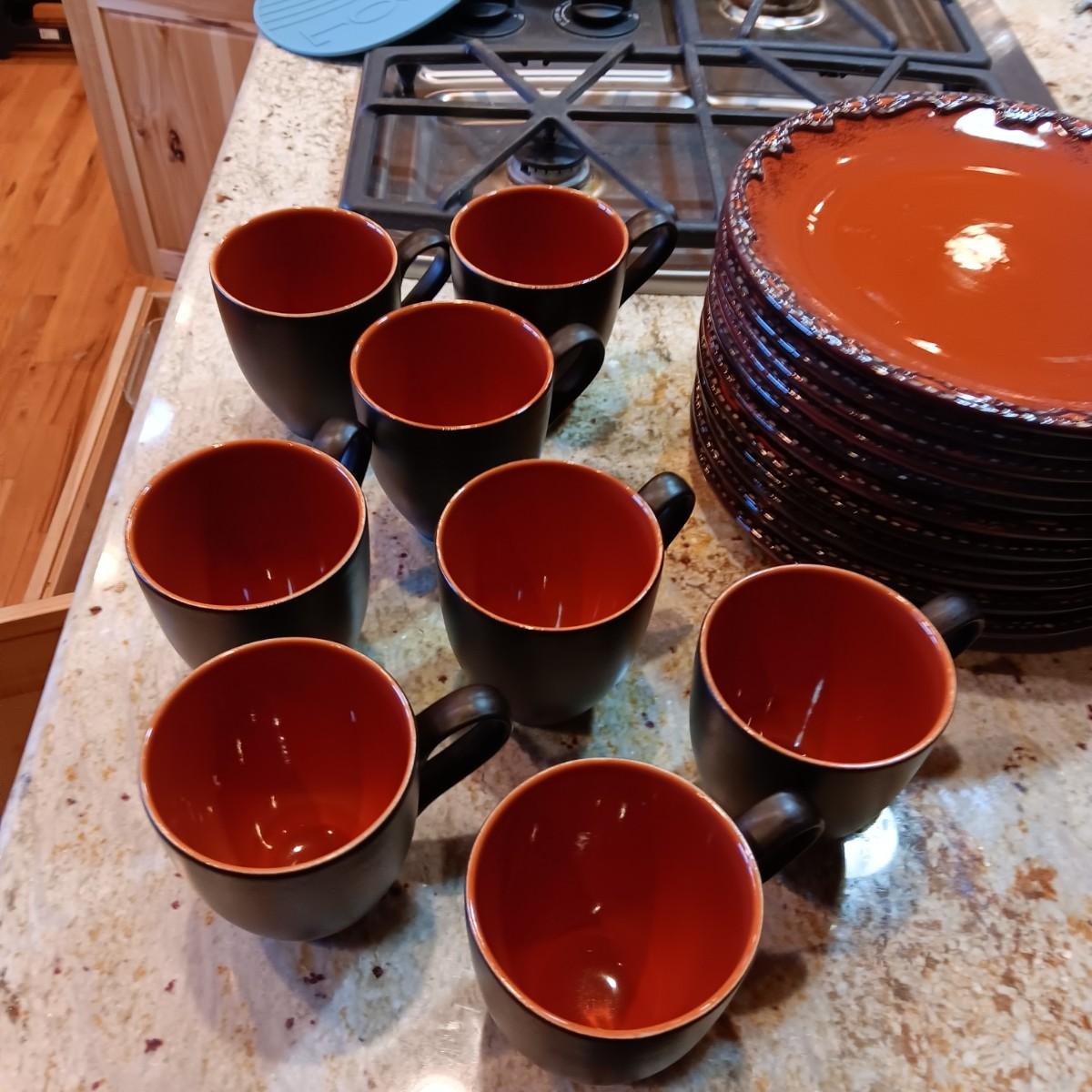 12 DINNER PLATES, 10 SALAD PLATES, 8 COFFEE MUGS