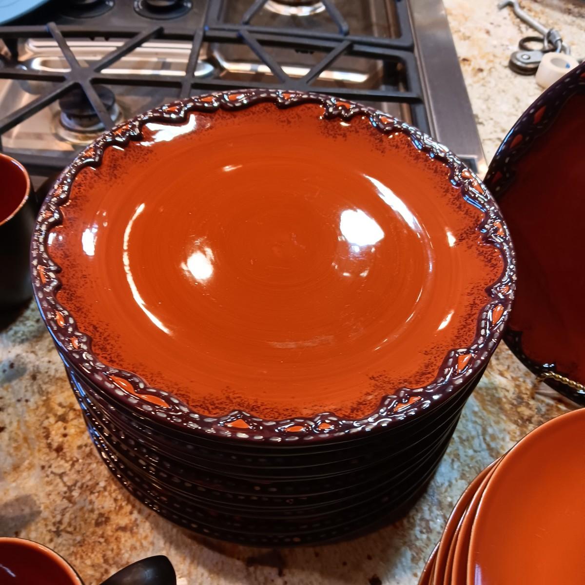 VERY NICE CLAY ART 'WESTERN PLAINS" HAND PAINTED DINNERWARE