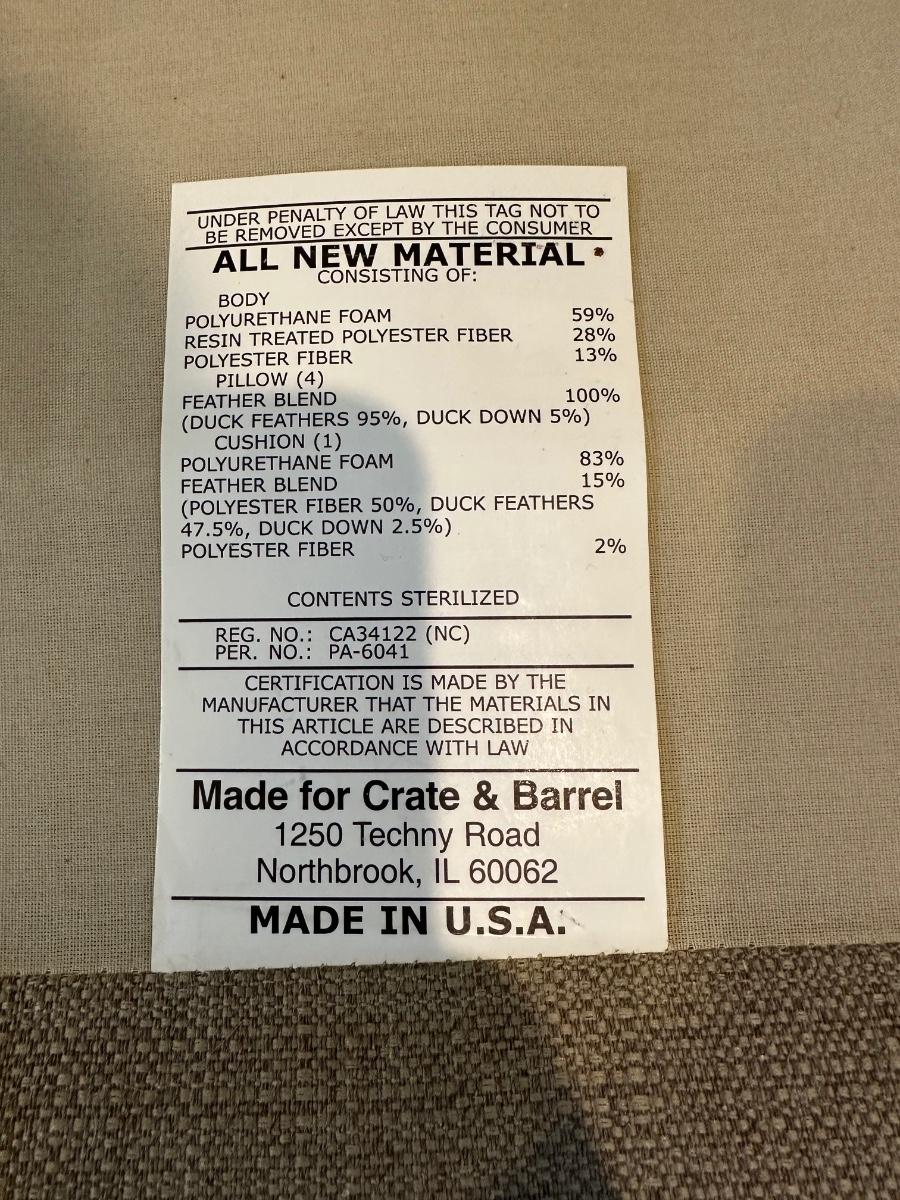 VERY NICE, CLEAN CRATE & BARREL TWEED STYLE SOFA