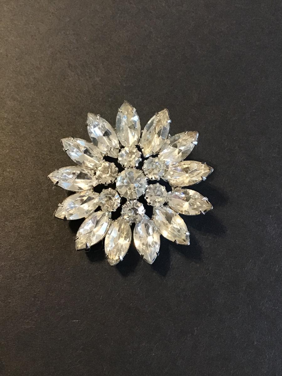 Very nice clear rhinestone flower brooch