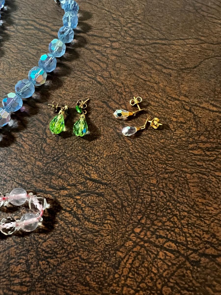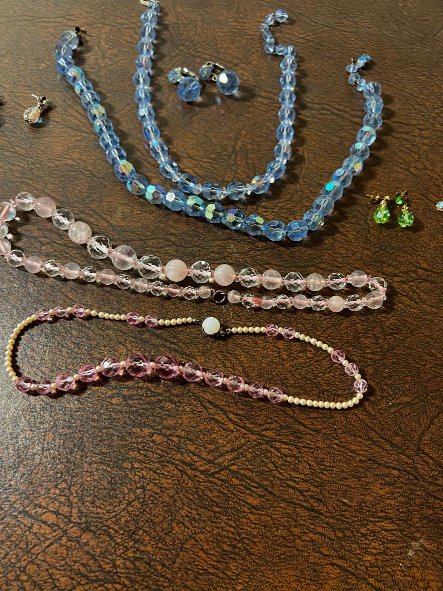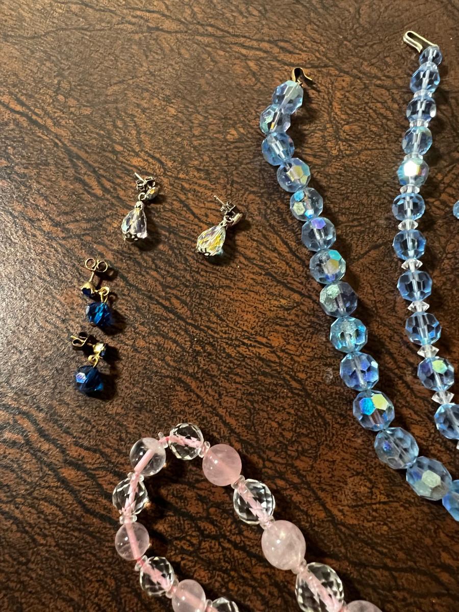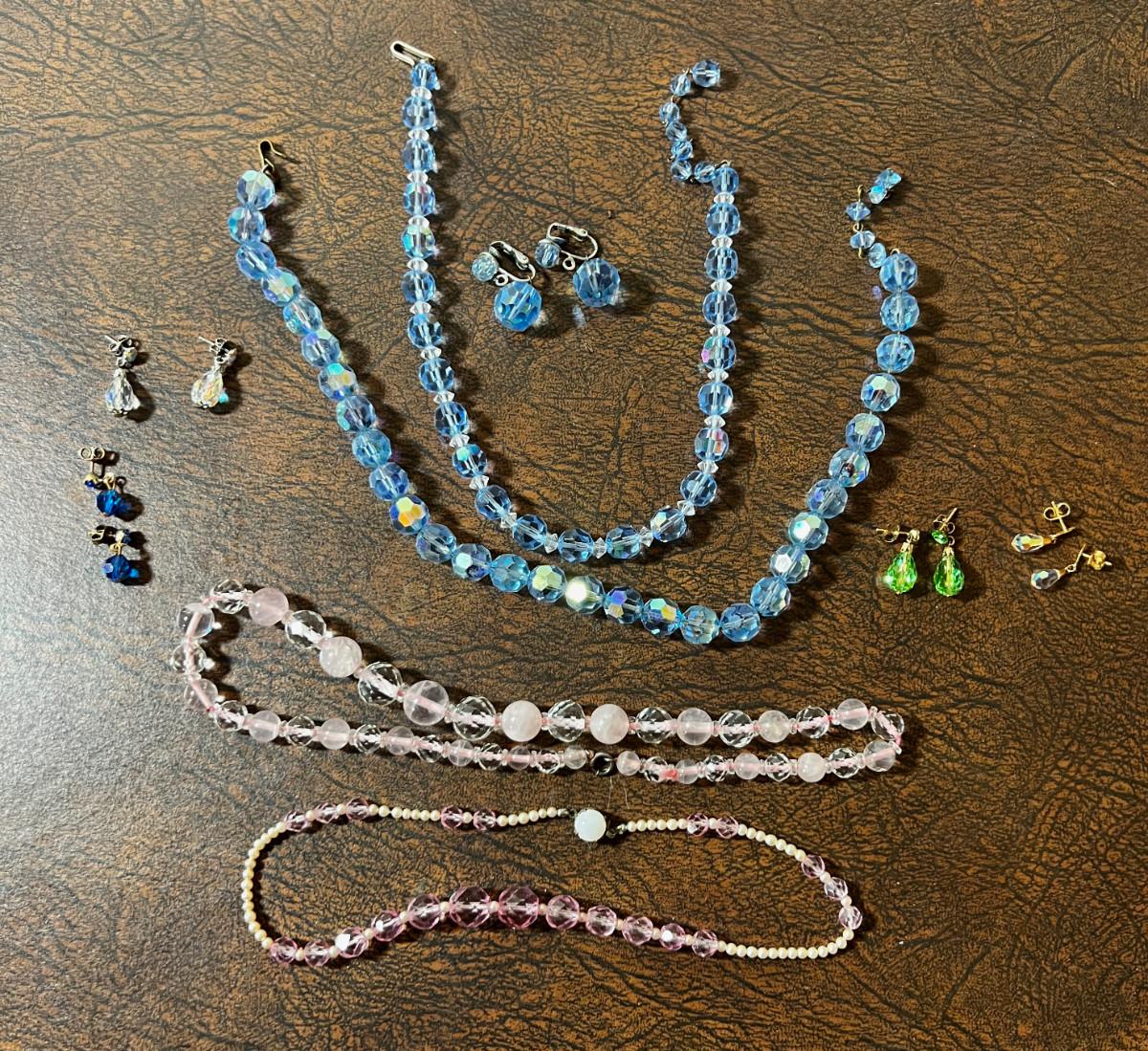 Very Nice Costume Jewels; Cut Glass, Pink & Blue