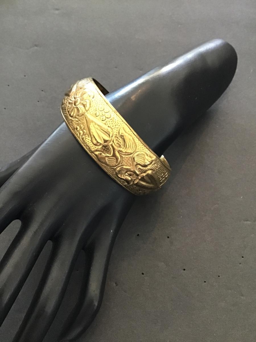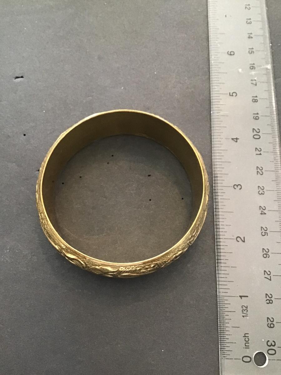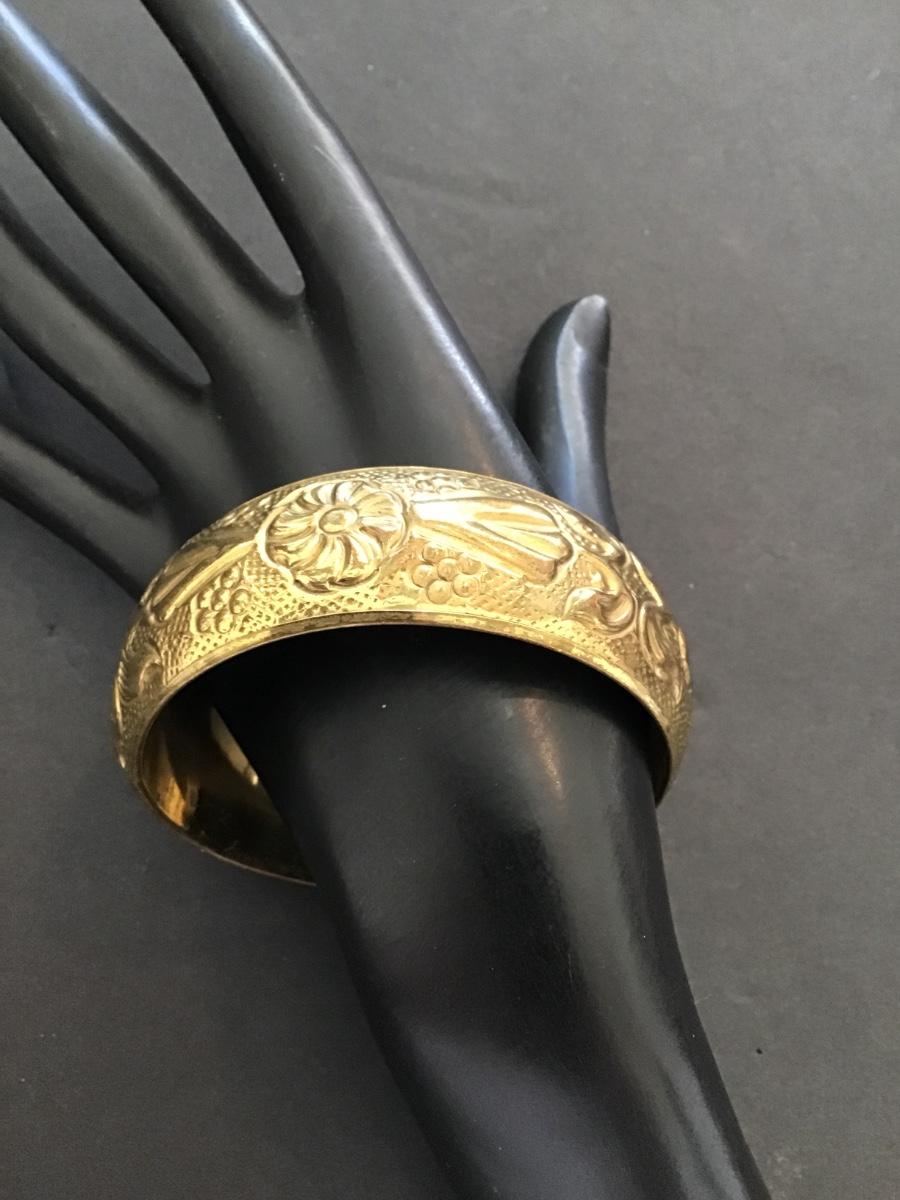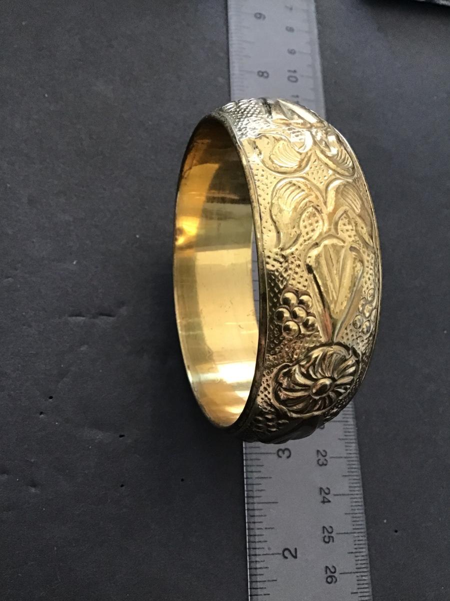 Very nice gold tone bangle bracelet. Please see attached photos.