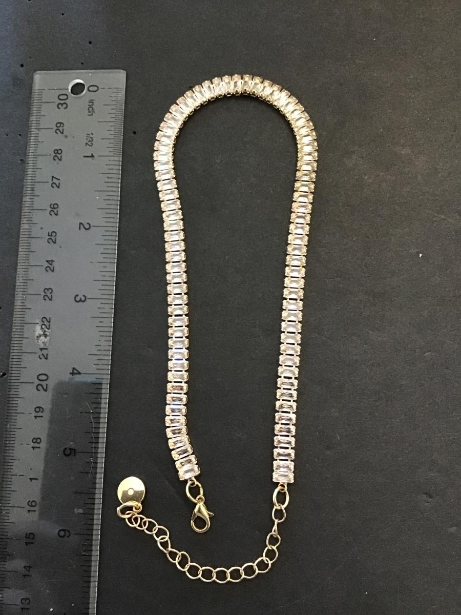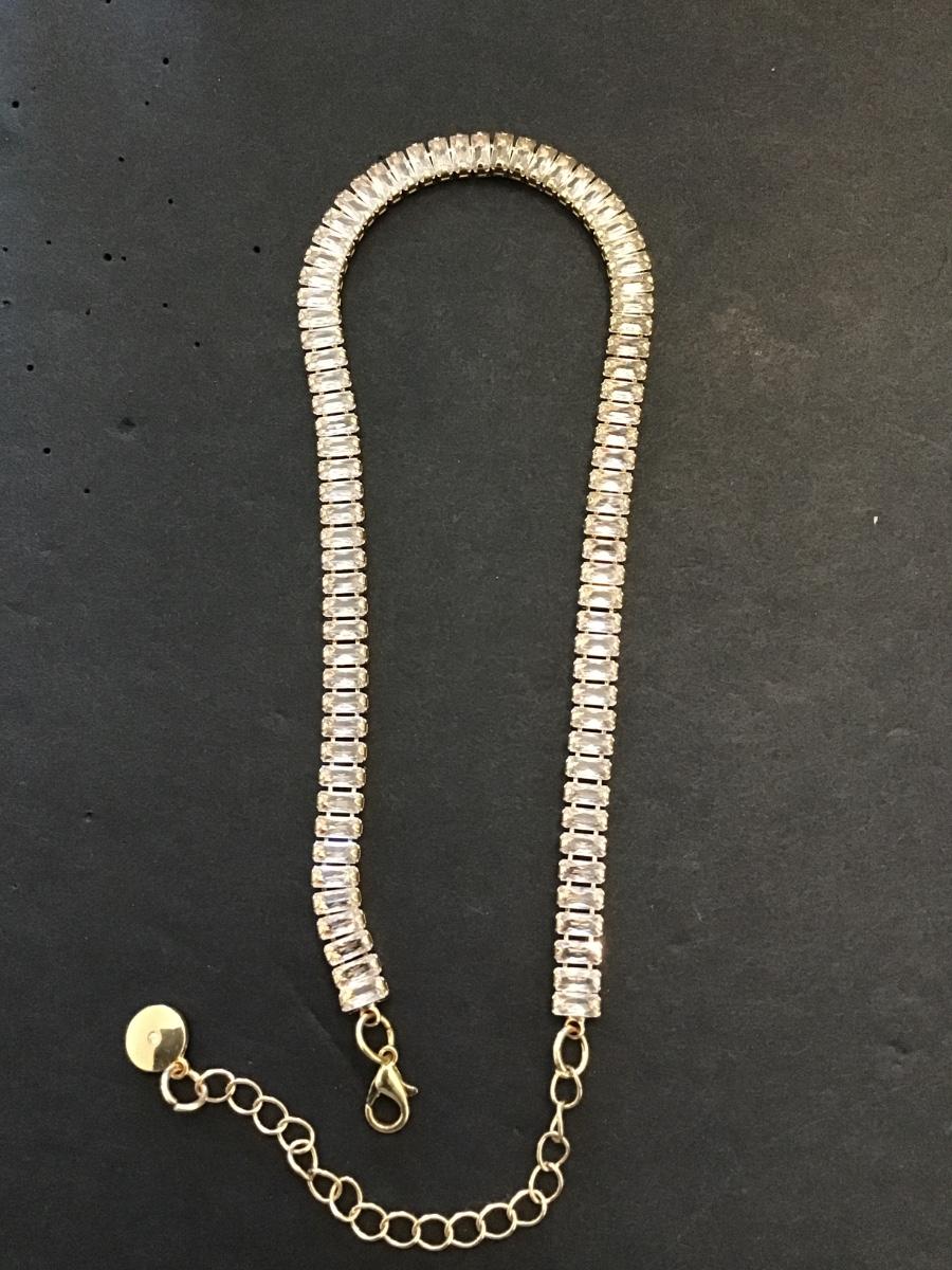 Very nice gold tone crystal rhinestone necklace. Please see attached photos.