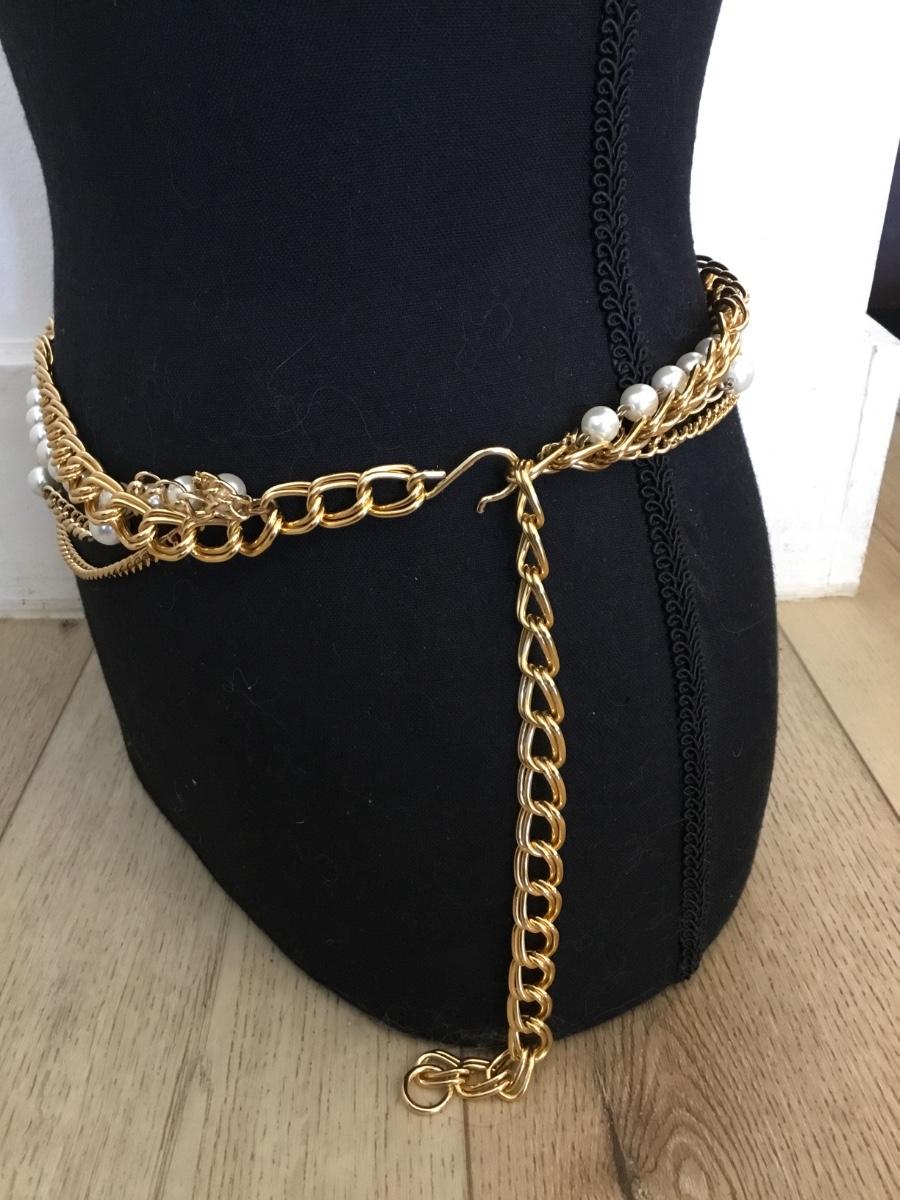 Very nice gold tone, faux pearl multi strand waist chain belt