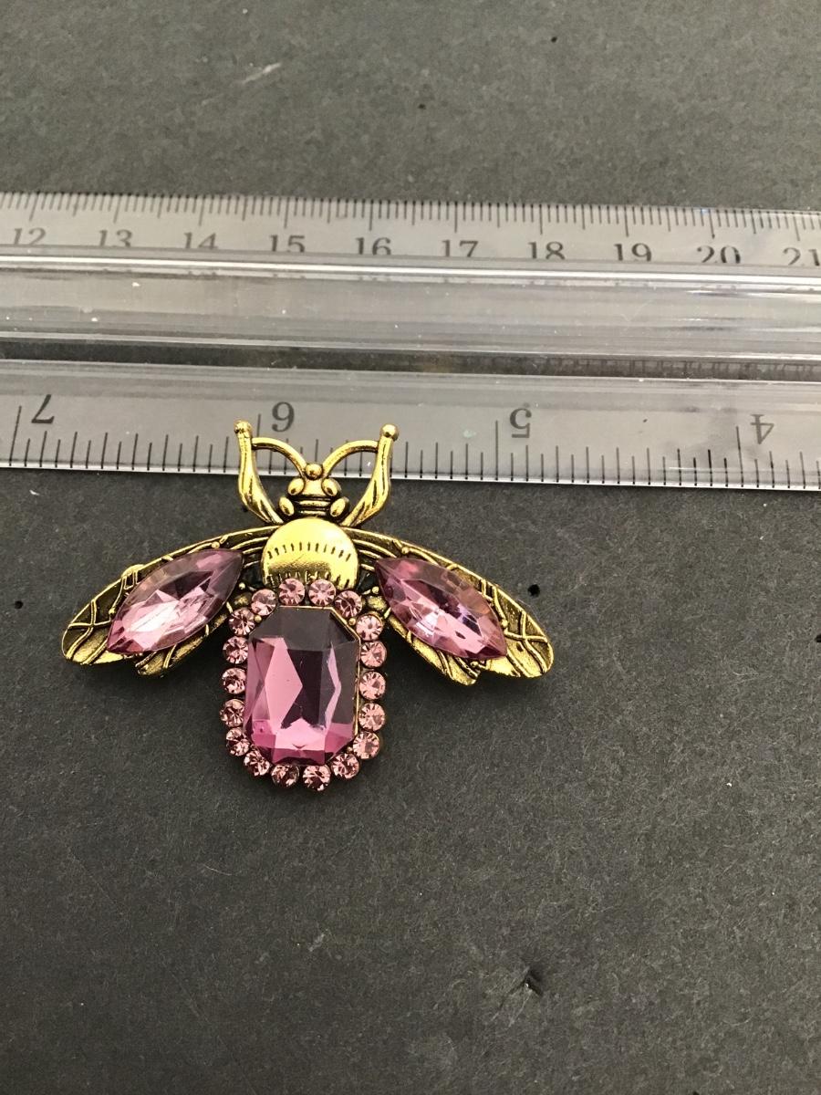 Very nice gold tone violet rhinestone bug brooch
