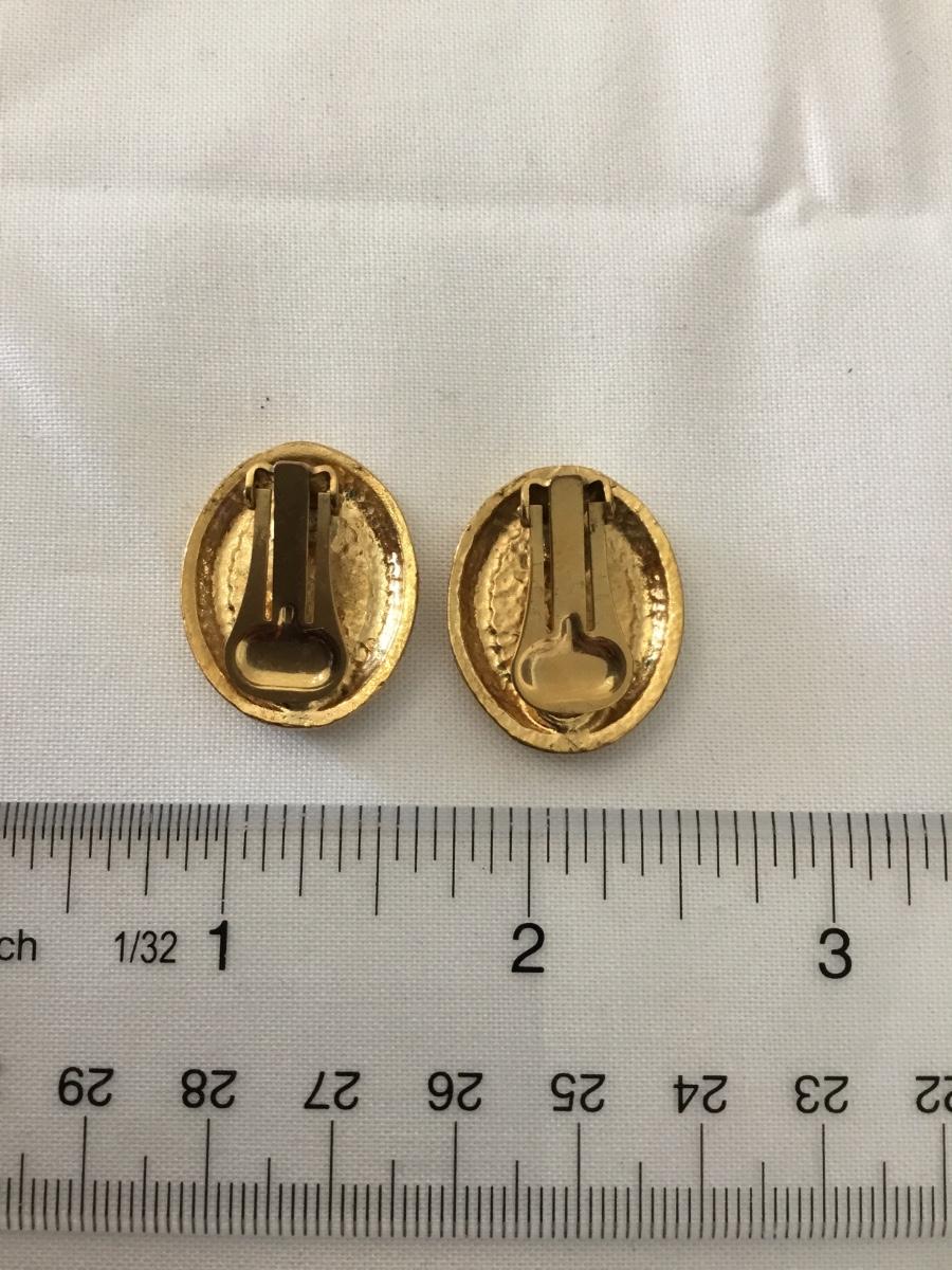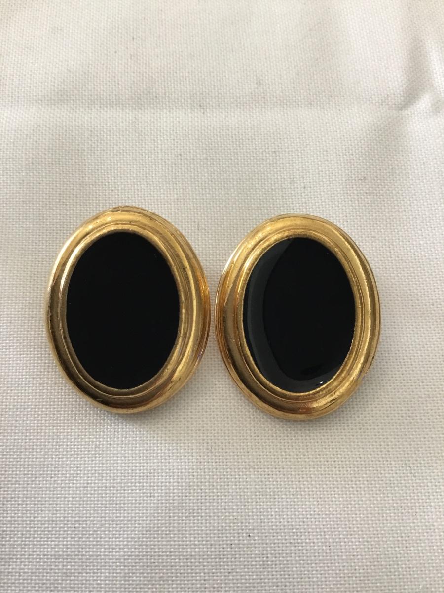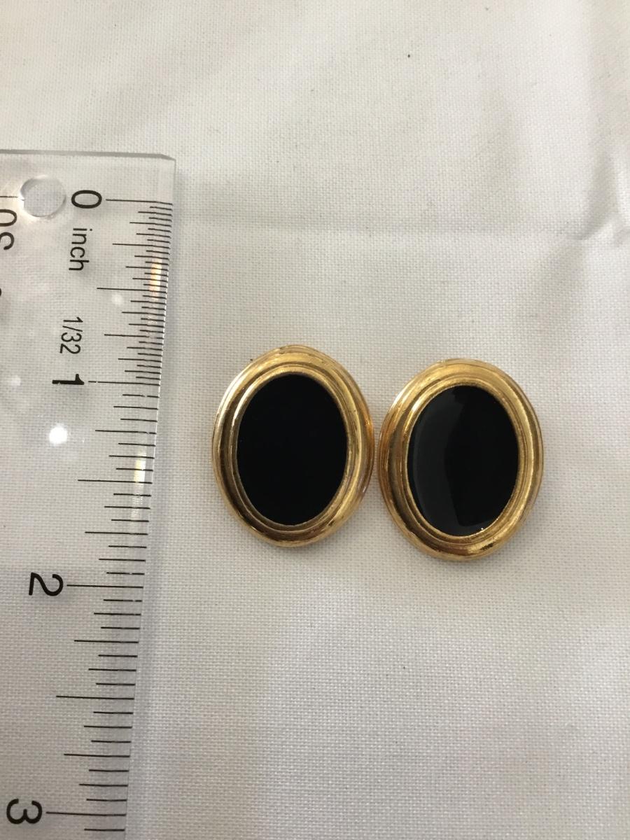Very nice gold toned, black enameled, oval clip on earrings vintage