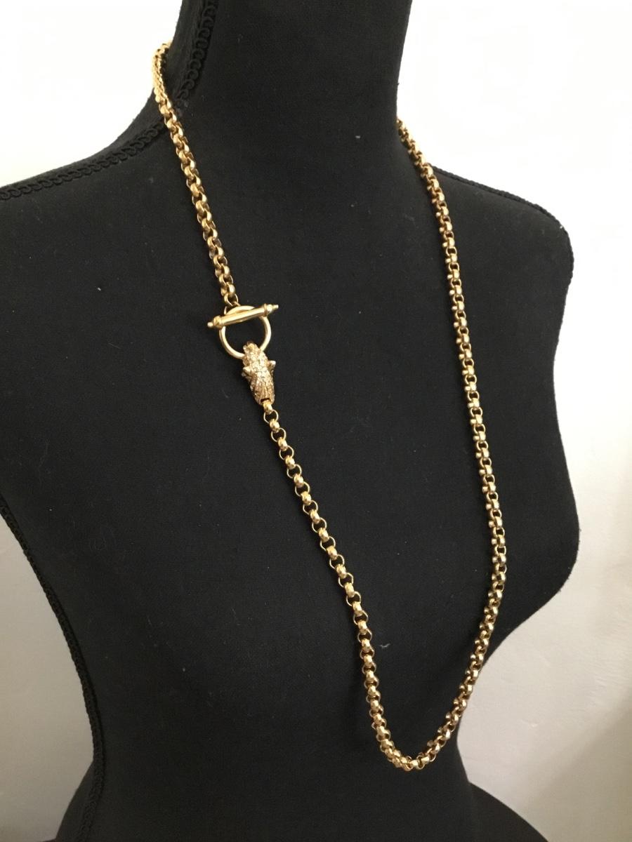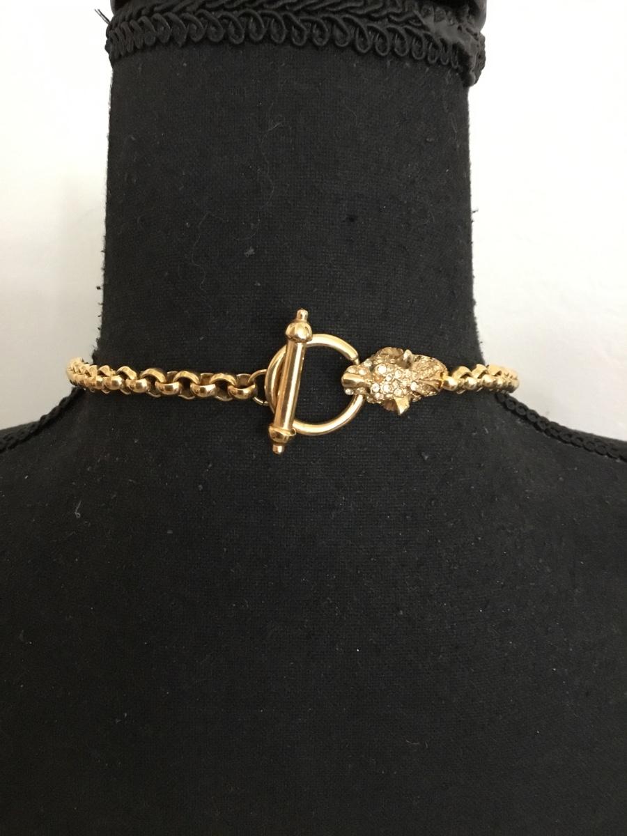 Very nice gold toned vintage rhinestone jaguar clasp