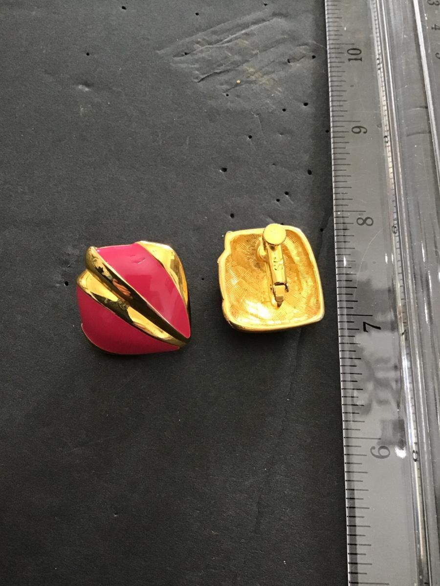 Very nice hot pink, gold tone JS sign. Screw back earrings. Please see attached photos.