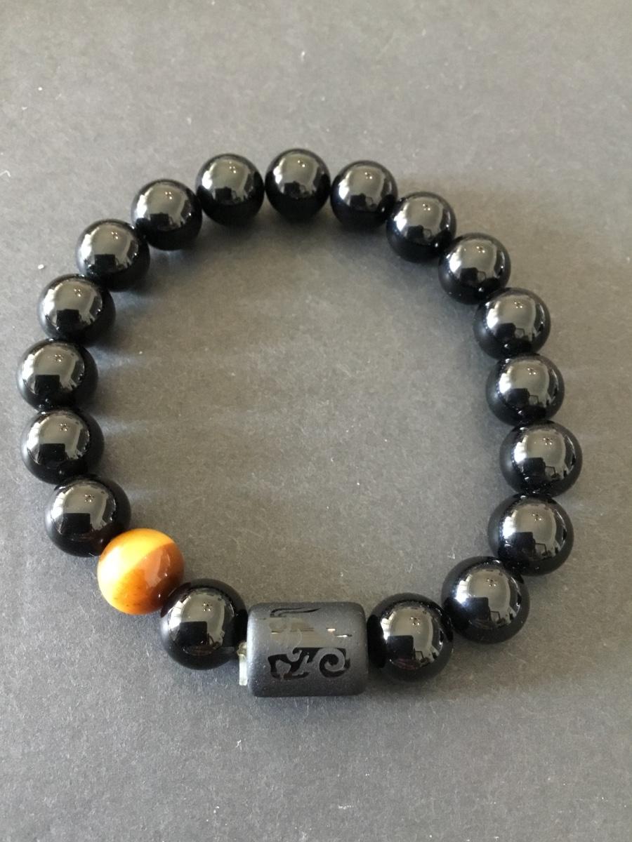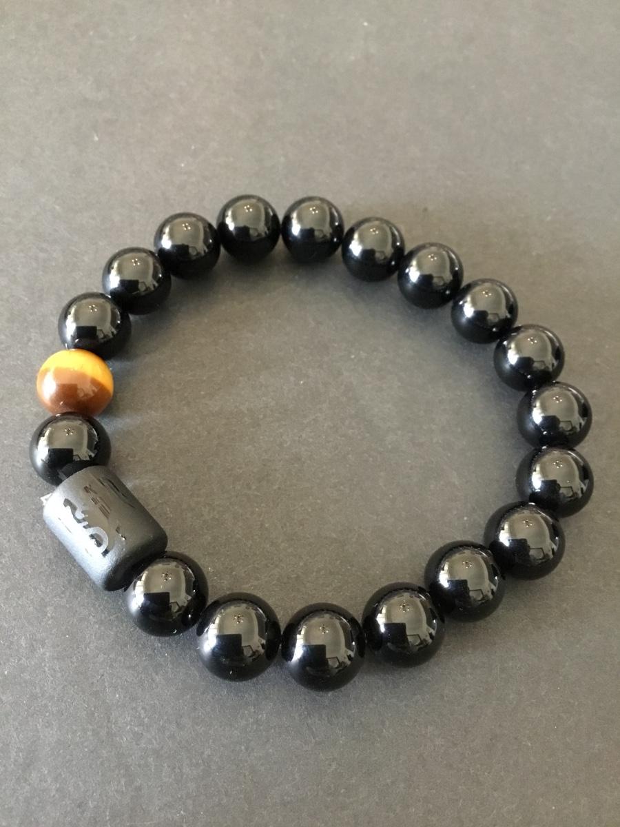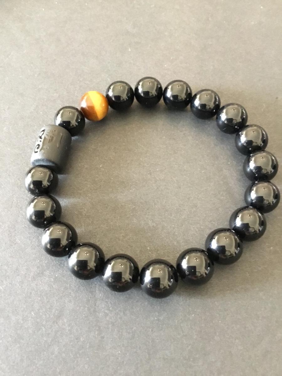 Very nice men’s black onyx, tigers eye, gemstone bead, healing stretch bracelet very nice