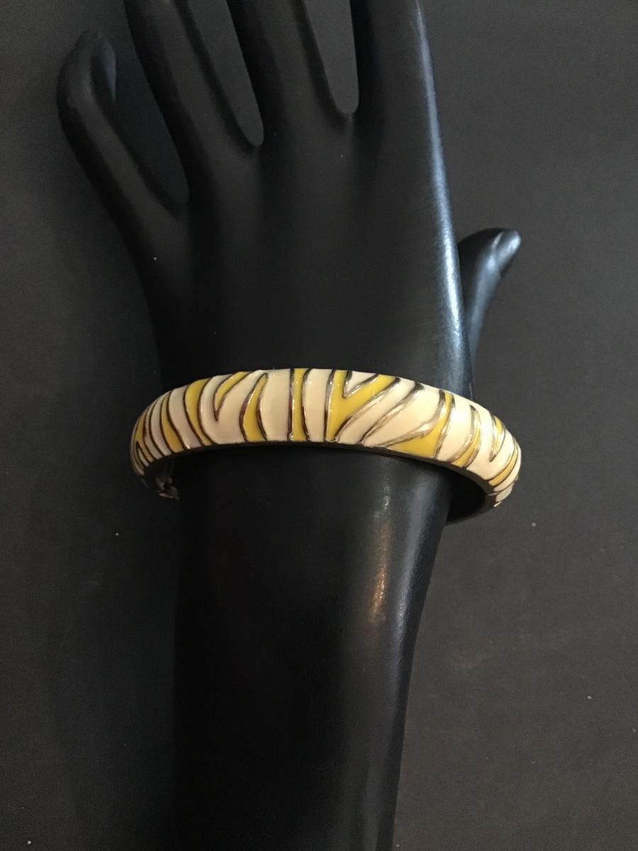 Very nice multicolor enamel hinged bracelet. Please see attached photos.