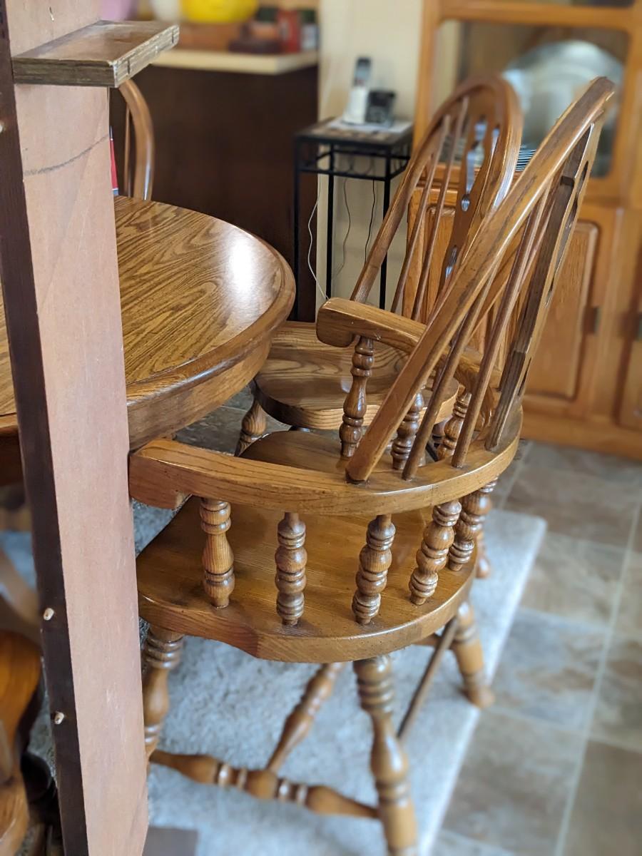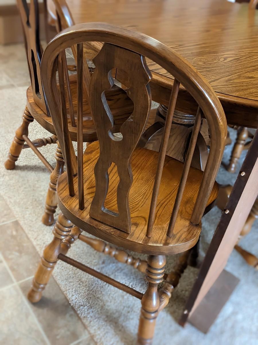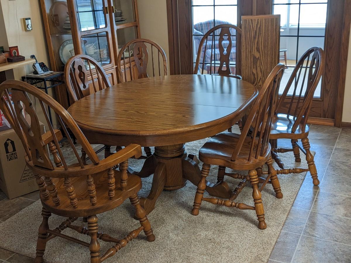 Very Nice Oak Dining Table and 6 Chairs, 1 Leaf