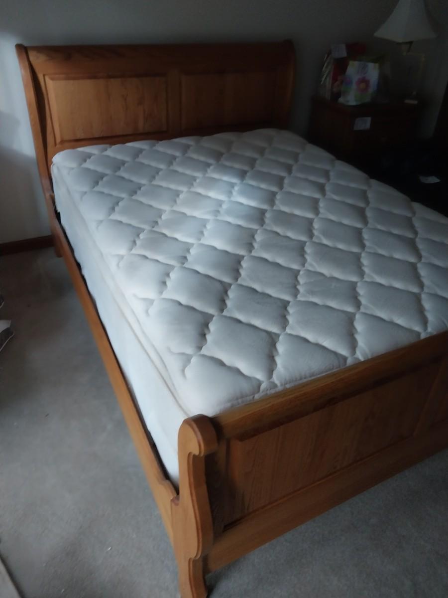 Very Nice Oak Queen Bed and Pillow top Mattress