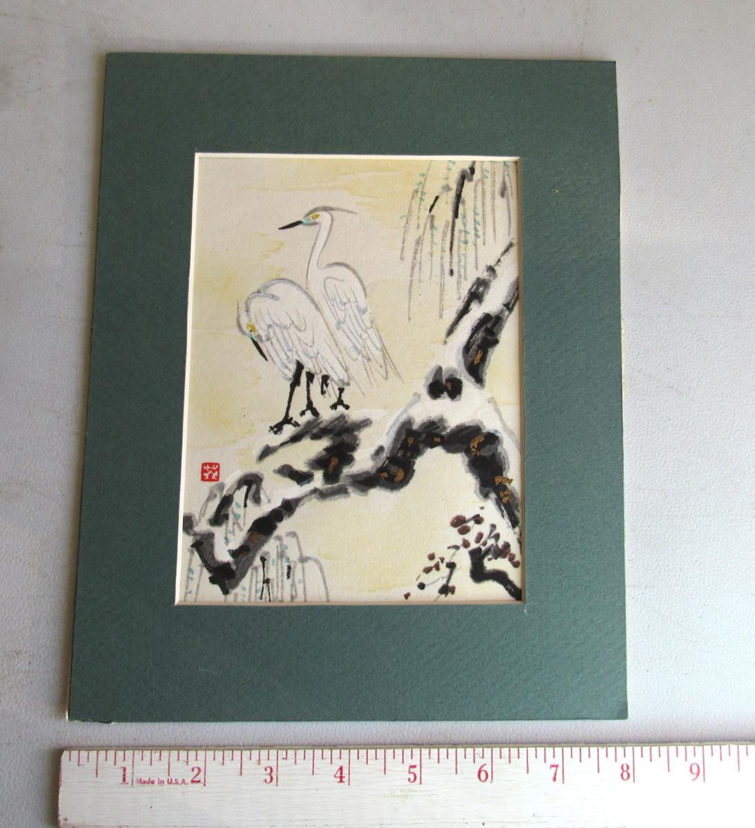 Very Nice Oriental Bird Print, Appears Original, Aritst Mark