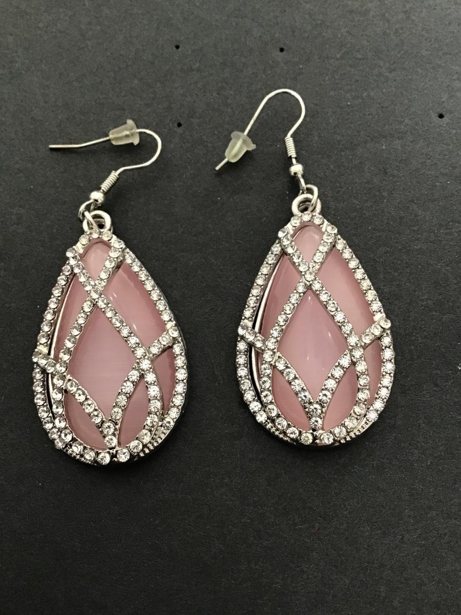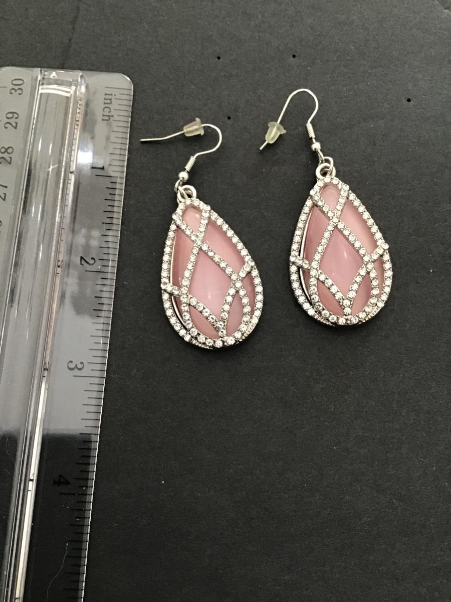 Very nice pink cat eye with rhinestone earrings. Please see attached photos.