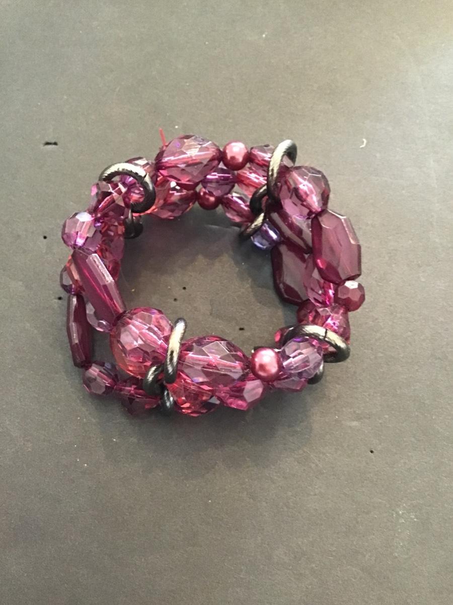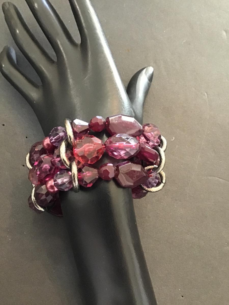 Very nice purple beaded fashion, statement stretchy bracelet. Please see attached photos.